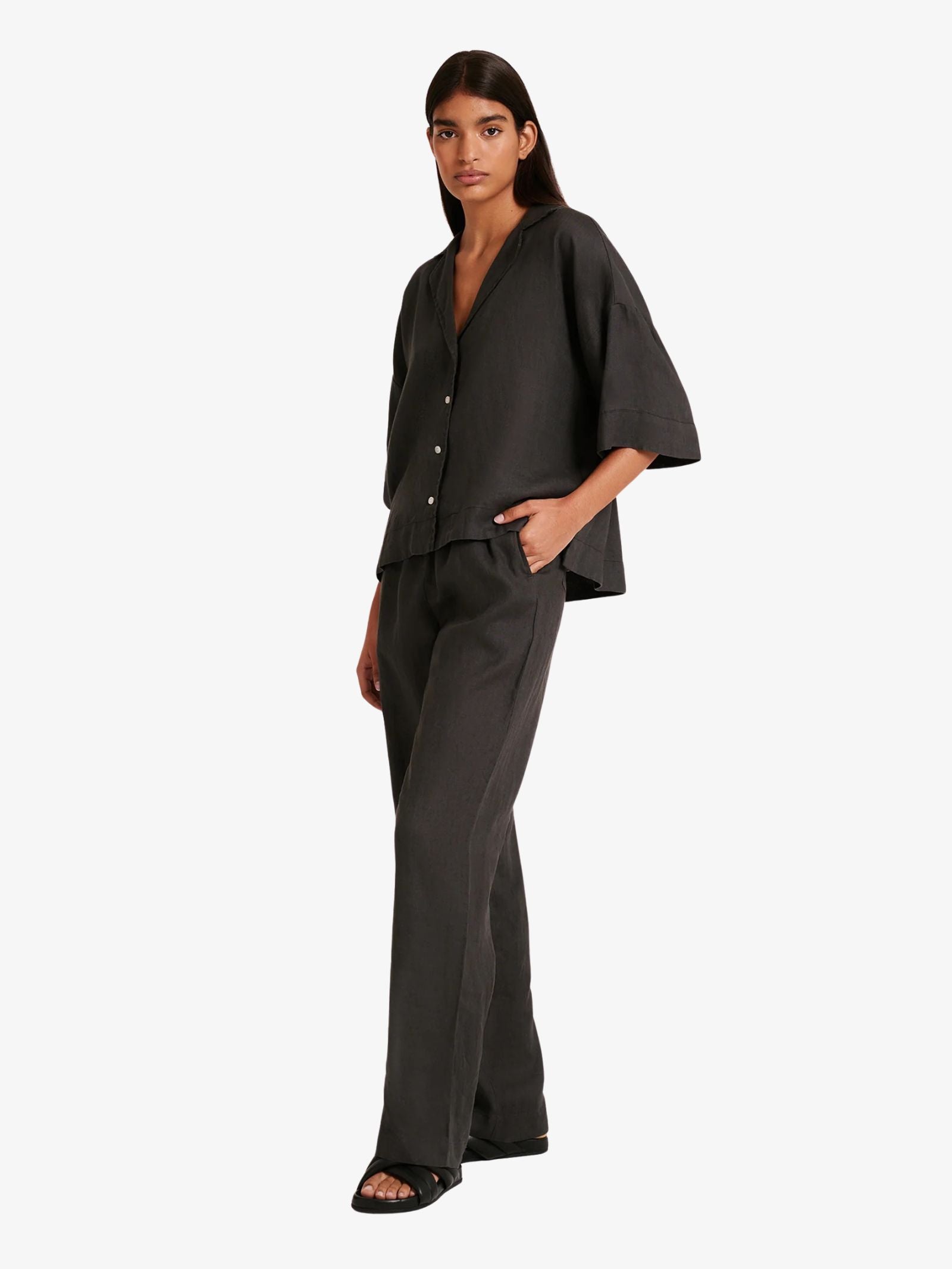 The Lounge Linen Pants by Nude Lucy is crafted from French organic linen washed for a soft, breathable finish. Designed with a clean, casual silhouette, these pants feature a wide leg profile and full-length cut. Functional details include an elasticated waistband, mock button front, side seam pockets, and a back patch pocket finished with the Nude Lucy branded label.