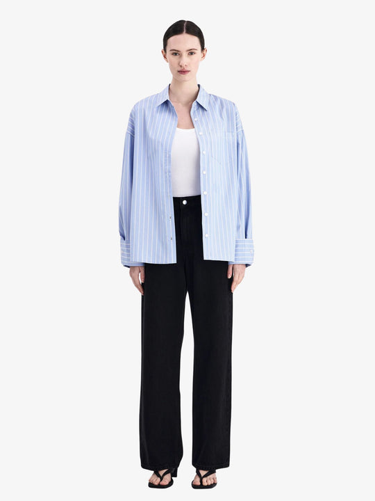 The Organic Poplin Shirt by Nude Lucy Made from 100% organic cotton poplin, this shirt offers a smooth and crisp hand feel thanks to its washed finish. Designed with an oversized silhouette that falls at the hips, it balances structure and comfort effortlessly.