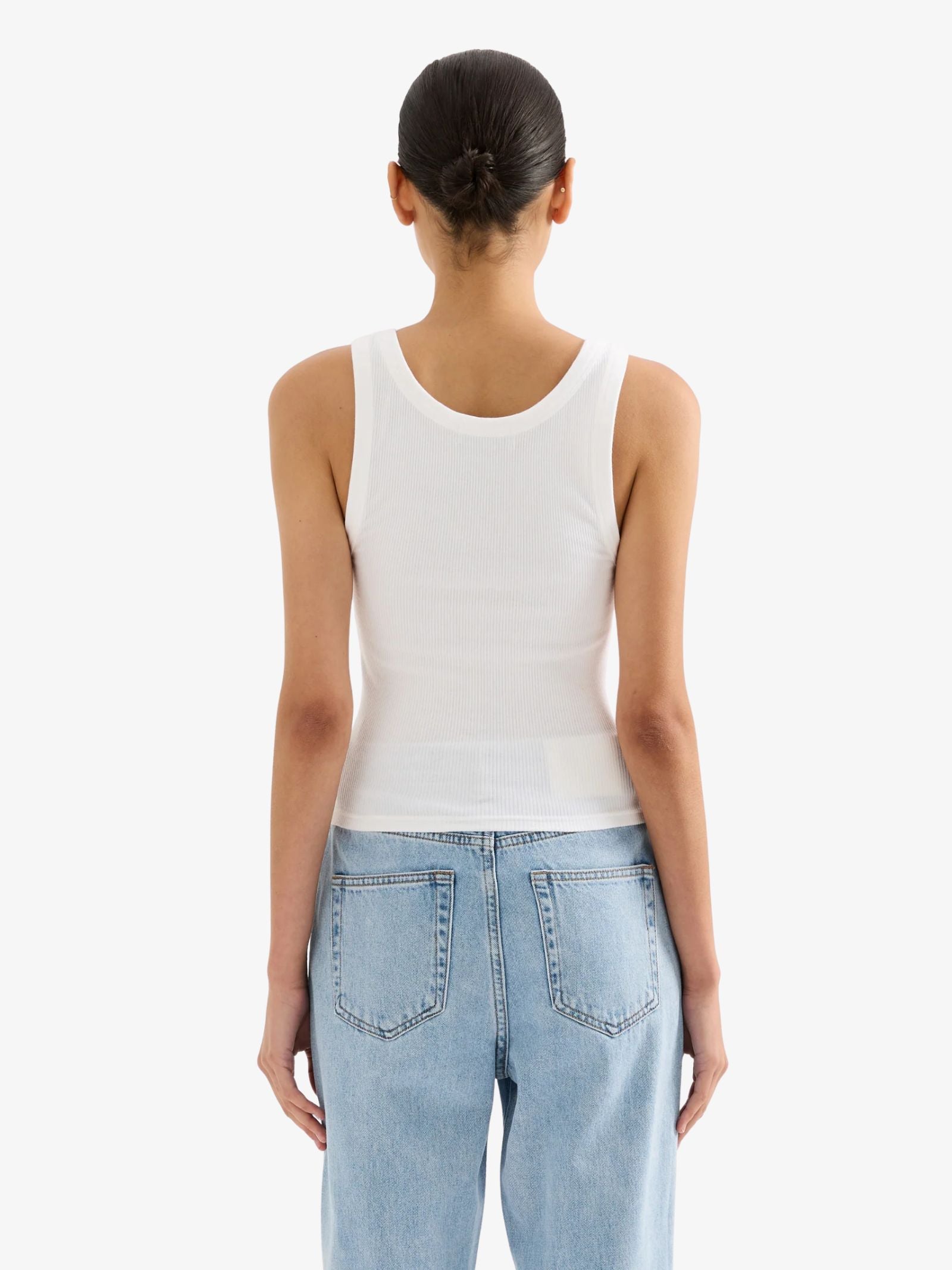 The Organic Rib Singlet by Nude Lucy is crafted from organic stretch cotton jersey, offering a breathable, lightweight feel with a figure-hugging fit. Designed as a wardrobe essential, it features a ribbed finish, thick straps, and a classic scoop neckline that sits neatly on the hips.