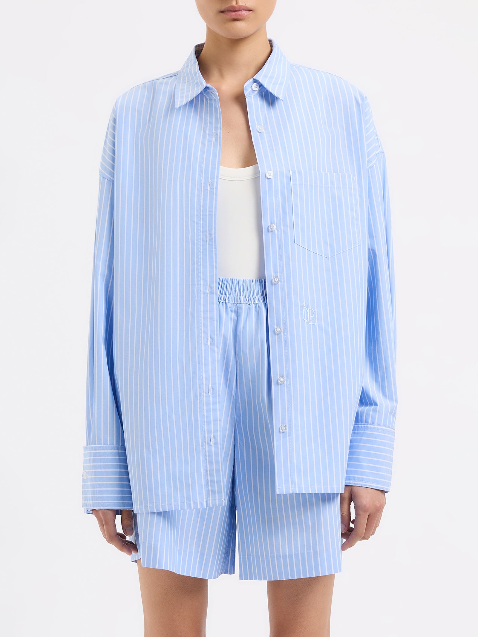 The Organic Poplin Shirt is crafted from organic cotton poplin, washed for a smooth yet crisp feel. With an oversized silhouette that sits comfortably at the hips, this shirt is all about effortless style. Thoughtful details like front patch pockets, large cuffs, and Nude Lucy branded buttons add a refined touch to this everyday staple. Perfect for layering or wearing solo, it's your go-to for laid-back sophistication.
