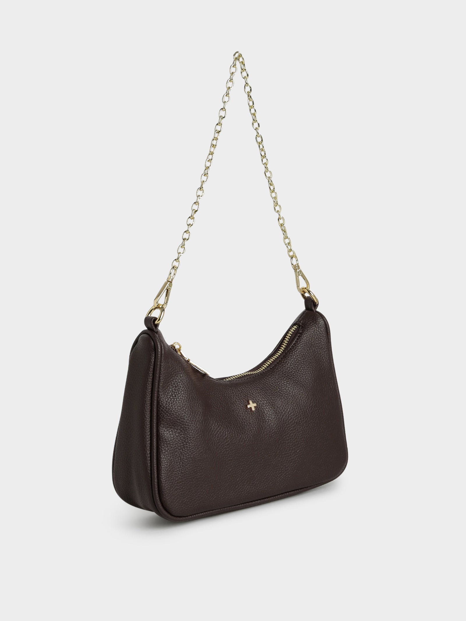 This is your go to little black bag! Small enough to be worn neatly on the shoulder but big enough to fit all the essentials. Lovely silver finishes. Satin finish material means it’s quite versatile for casual or evening wear. Great wardrobe staple.