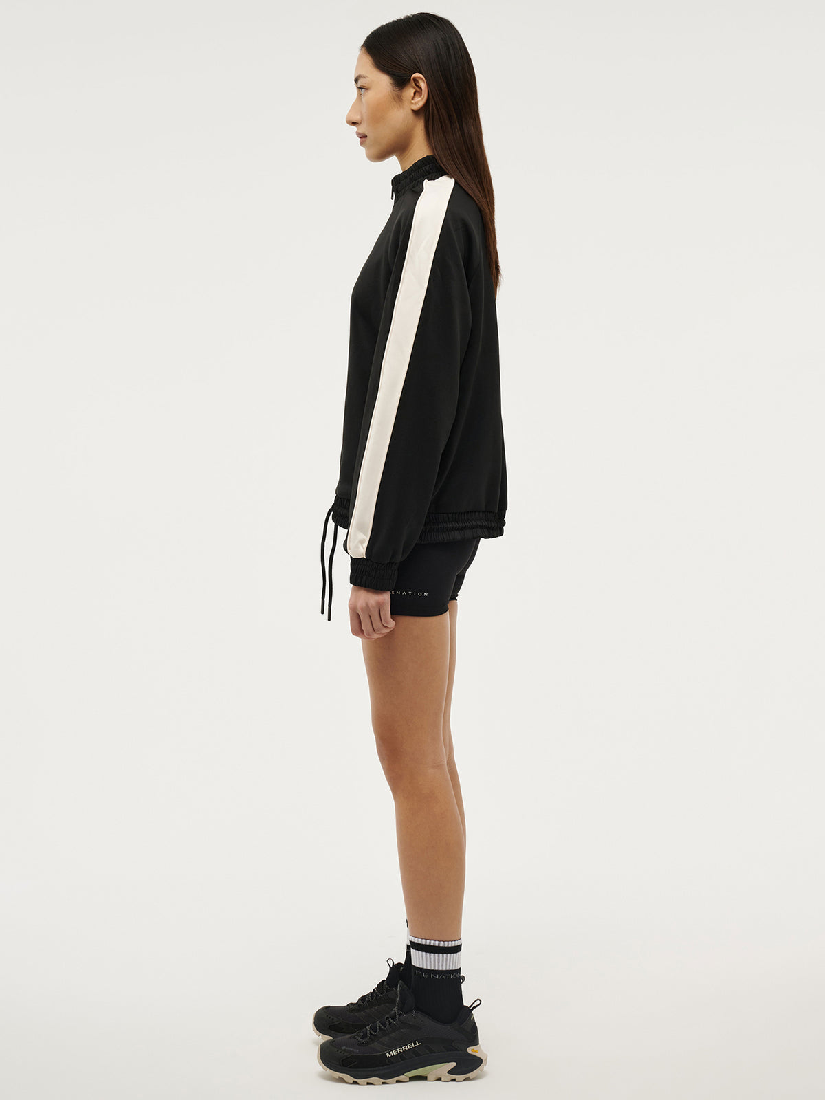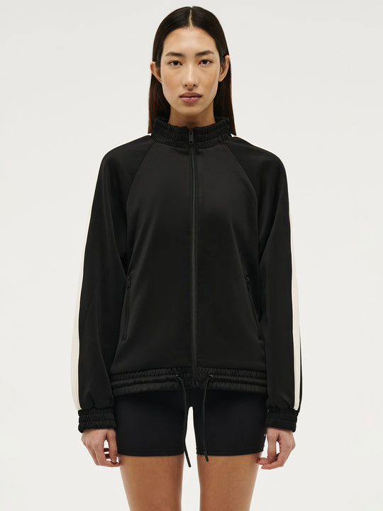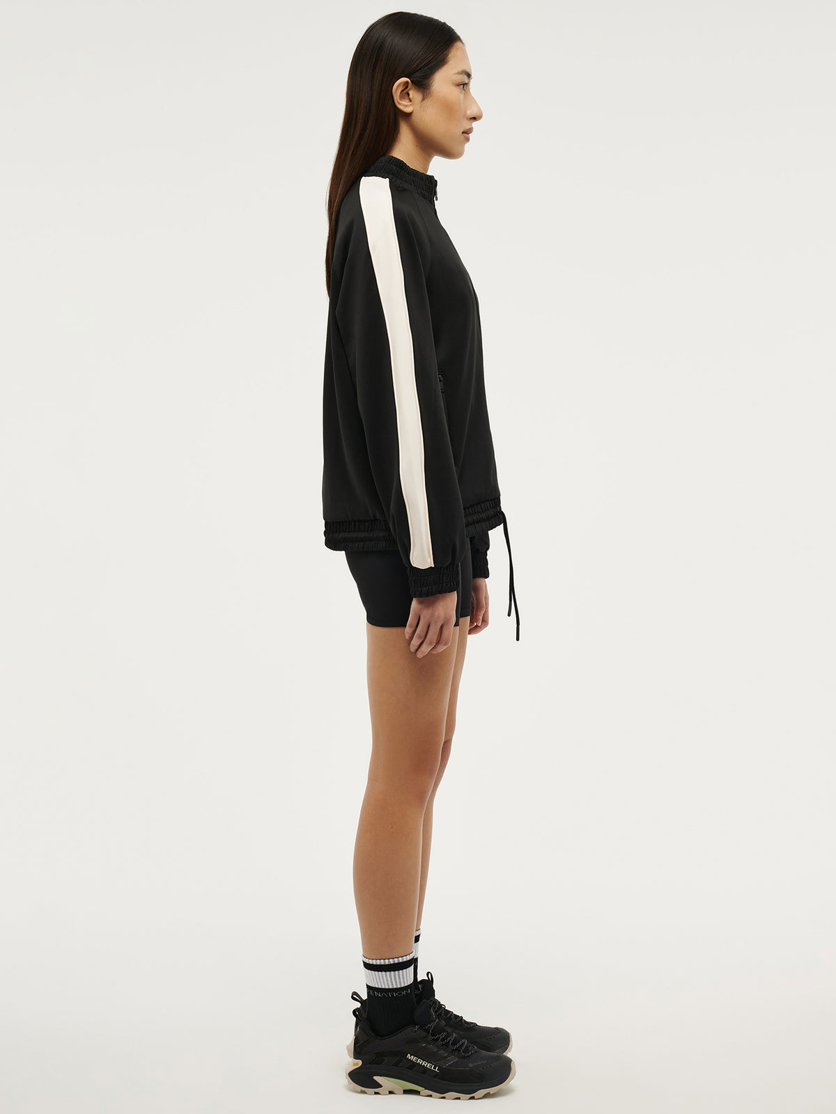 The contrasting white stripes down both arms give this jacket a sporty edge, embodying P.E Nation's bold, dynamic aesthetic.