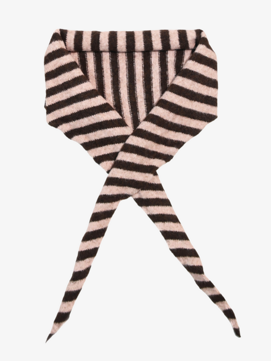 The Paris Triangle Scarf in Pink/Brown by Petite Moments ia designed with a bold striped palette and ultra-soft knit. This scarf features an oversized triangle silhouette and can be worn wrapped, draped, or pulled overhead.