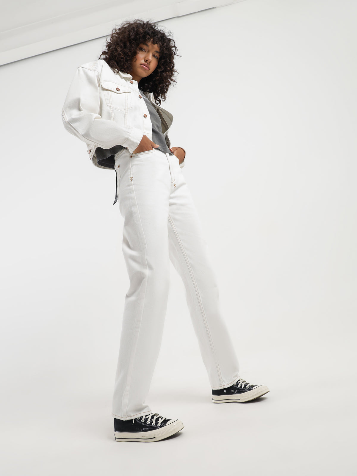 these are not just ordinary white jeans, the partially detached waistband adds a very interesting feature (which is why i bought these). the fit is true to size for ksubis (and in case you don't know, i tend to size up in ksubis).
