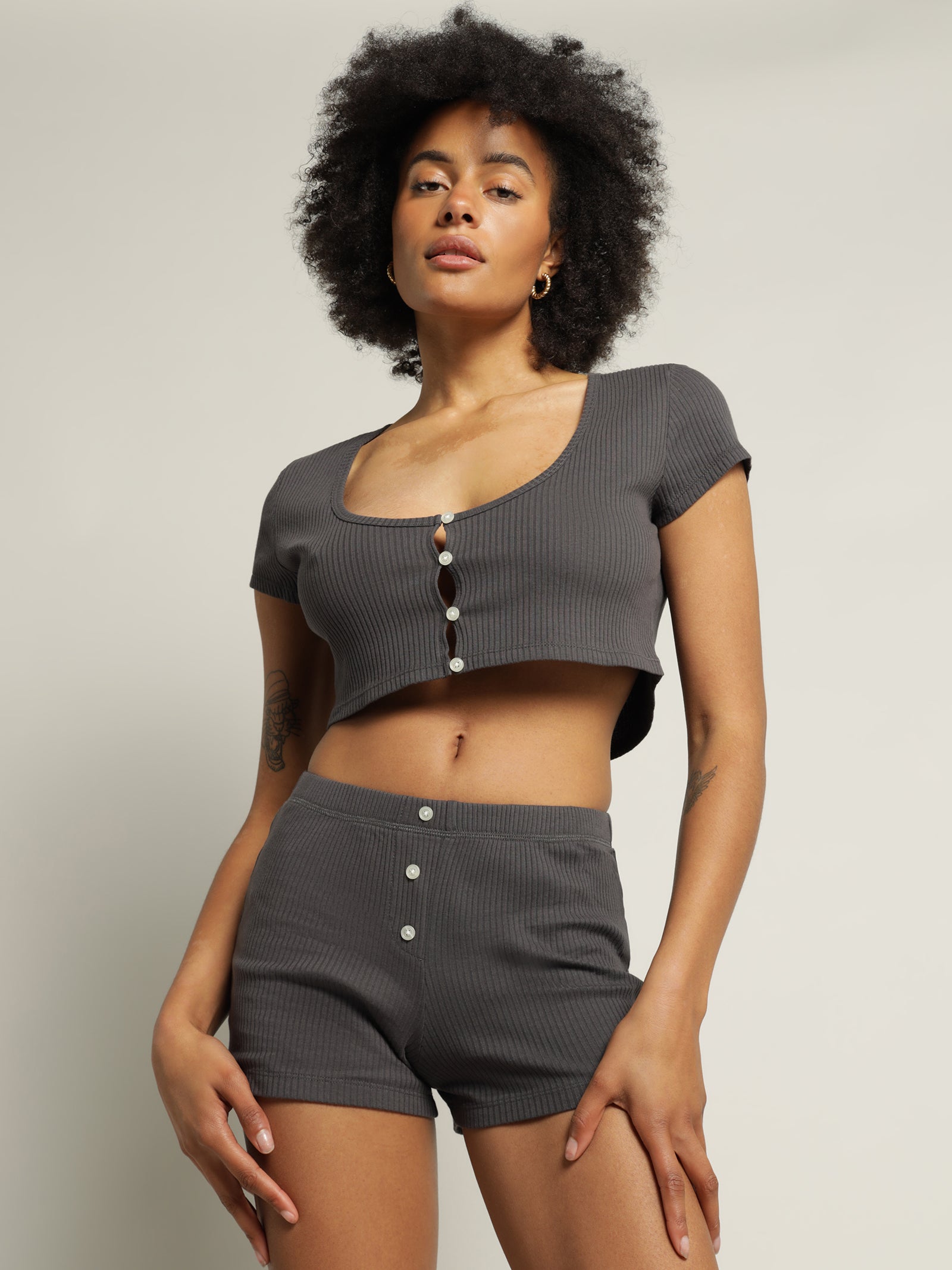 Sizing: This garment is a slim cropped fit, and our model is wearing a size S