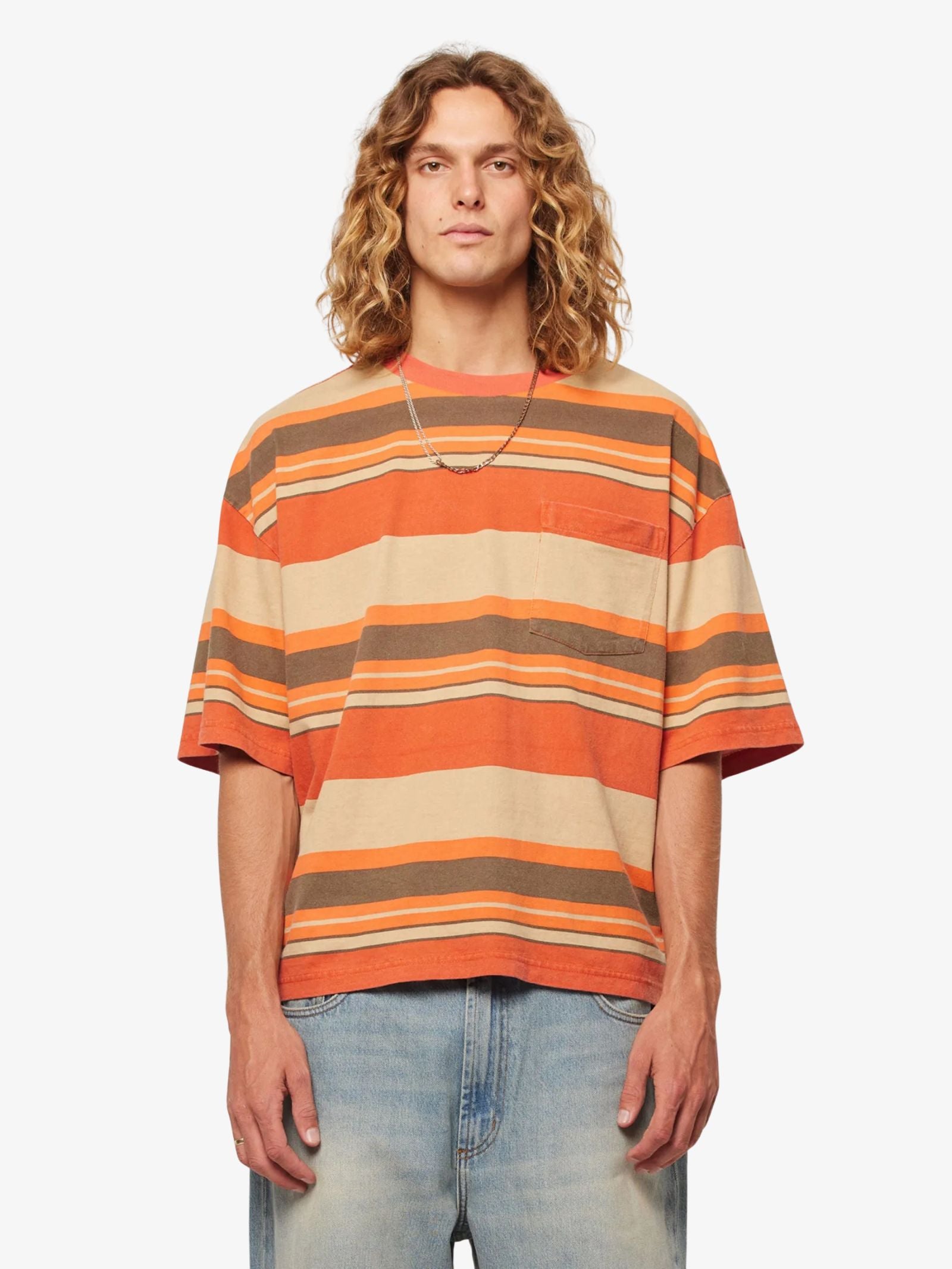 The Big Newport Stripe Tee by Rollas is made from soft cotton fabric and designed with an oversized, relaxed fit. This T-shirt features a bold striped pattern in orange and cream and a washed finish for that perfect vintage look, complete with a modern cropped hemline.