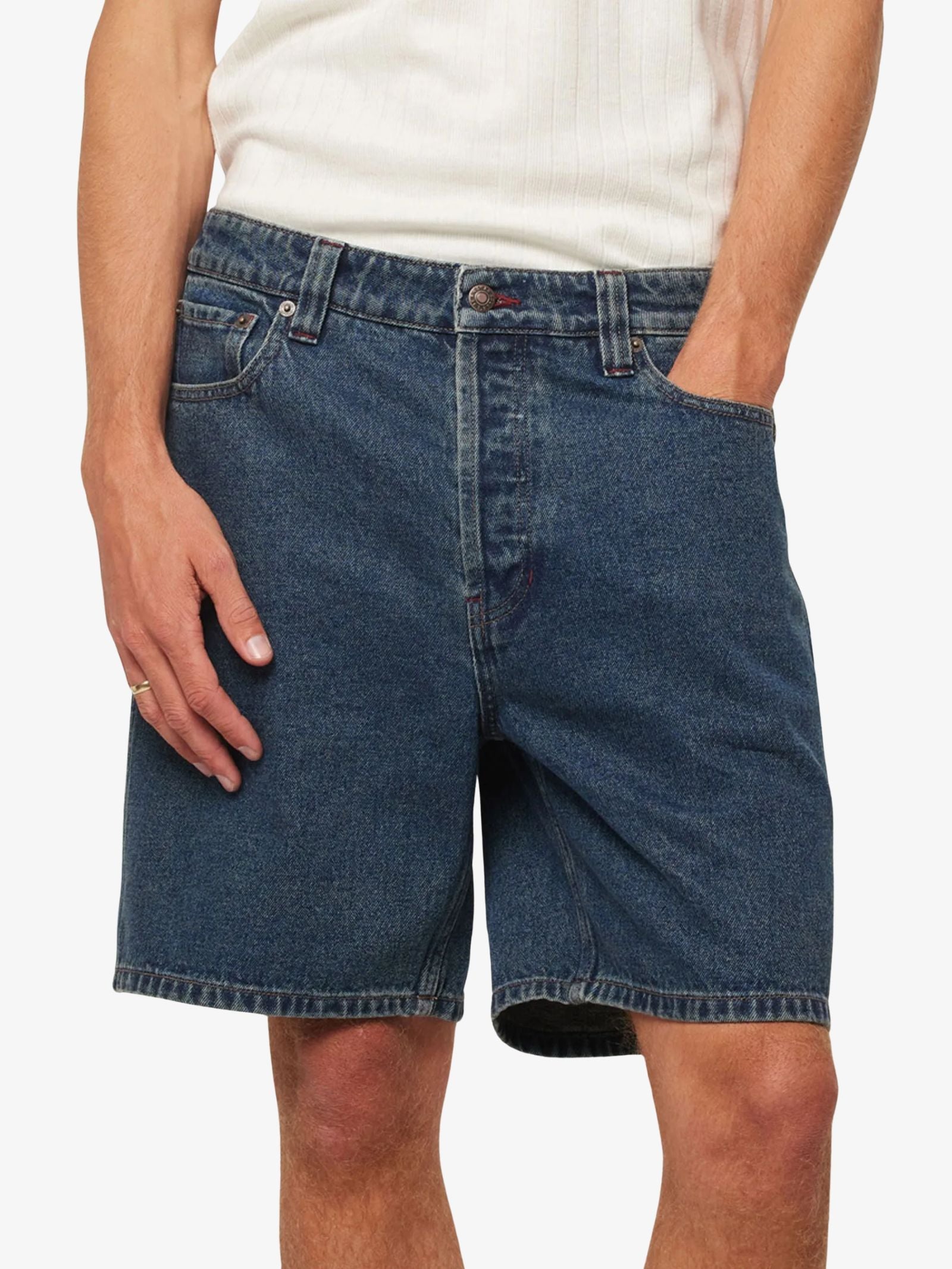 The Ezy Shorts by Rollas are made from classic cotton denim and designed with a mid-rise, relaxed fit that is loose through the seat and thigh. These shorts feature side entry pockets on the front and a wider hem opening for a comfortable fit.