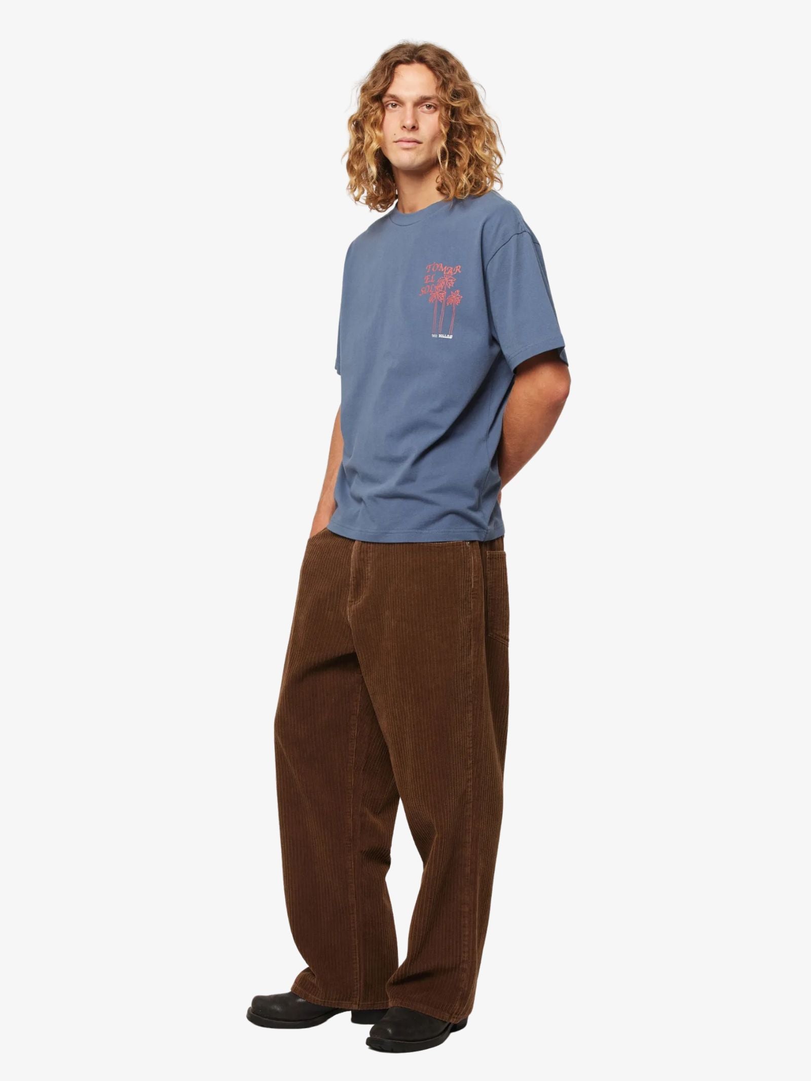 The Ezy Sunbather Tee by Rollas is made from soft cotton fabric and designed with an oversized, relaxed fit. This T-shirt features a washed back finish for a vintage look, a modern cropped hemline, and a tropical graphic print with text on the back.