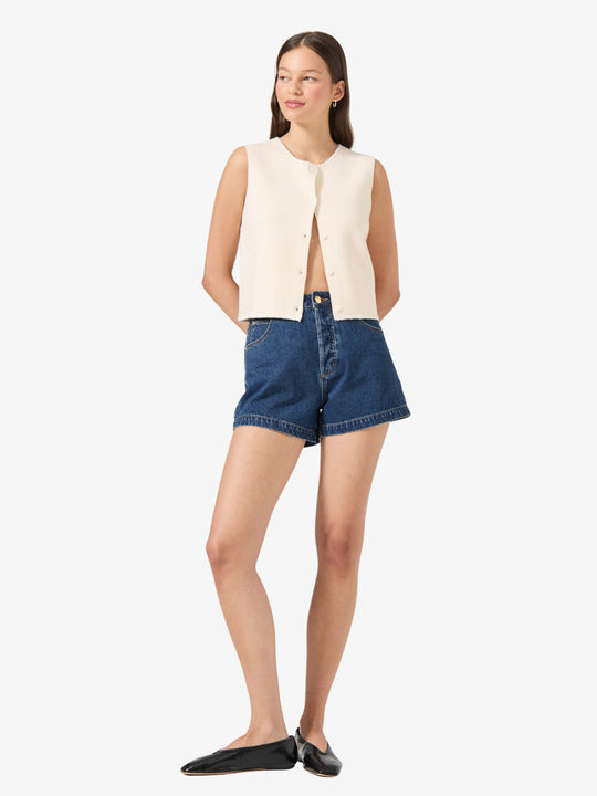 The Mirage Shorts by Rollas is made from rigid cotton denim with subtle texture and designed with a high-rise, relaxed fit and cheeky silhouette. This summer staple features a classic button fly and signature Rolla’s flap front pockets with heritage-style trims.