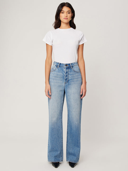 The Stevie Relaxed Jean by Rollas is made from rigid, non-stretch organic cotton denim and designed with a high-rise, relaxed straight leg fit. This modern update to the classic Heidi Jean is relaxed through the seat and thigh and features the brand's signature back pocket stitching.