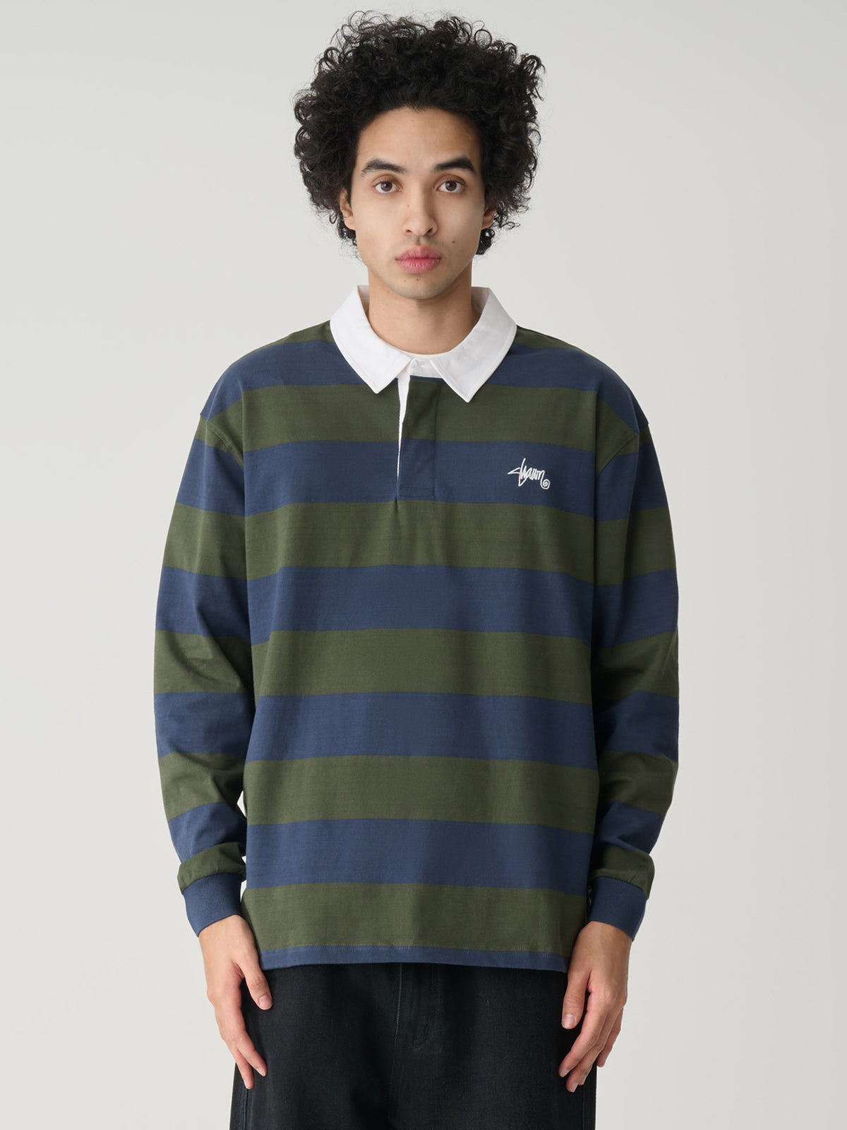 The Rugby Jersey by S-Double features bold horizontal stripes and a crisp white contrast collar.