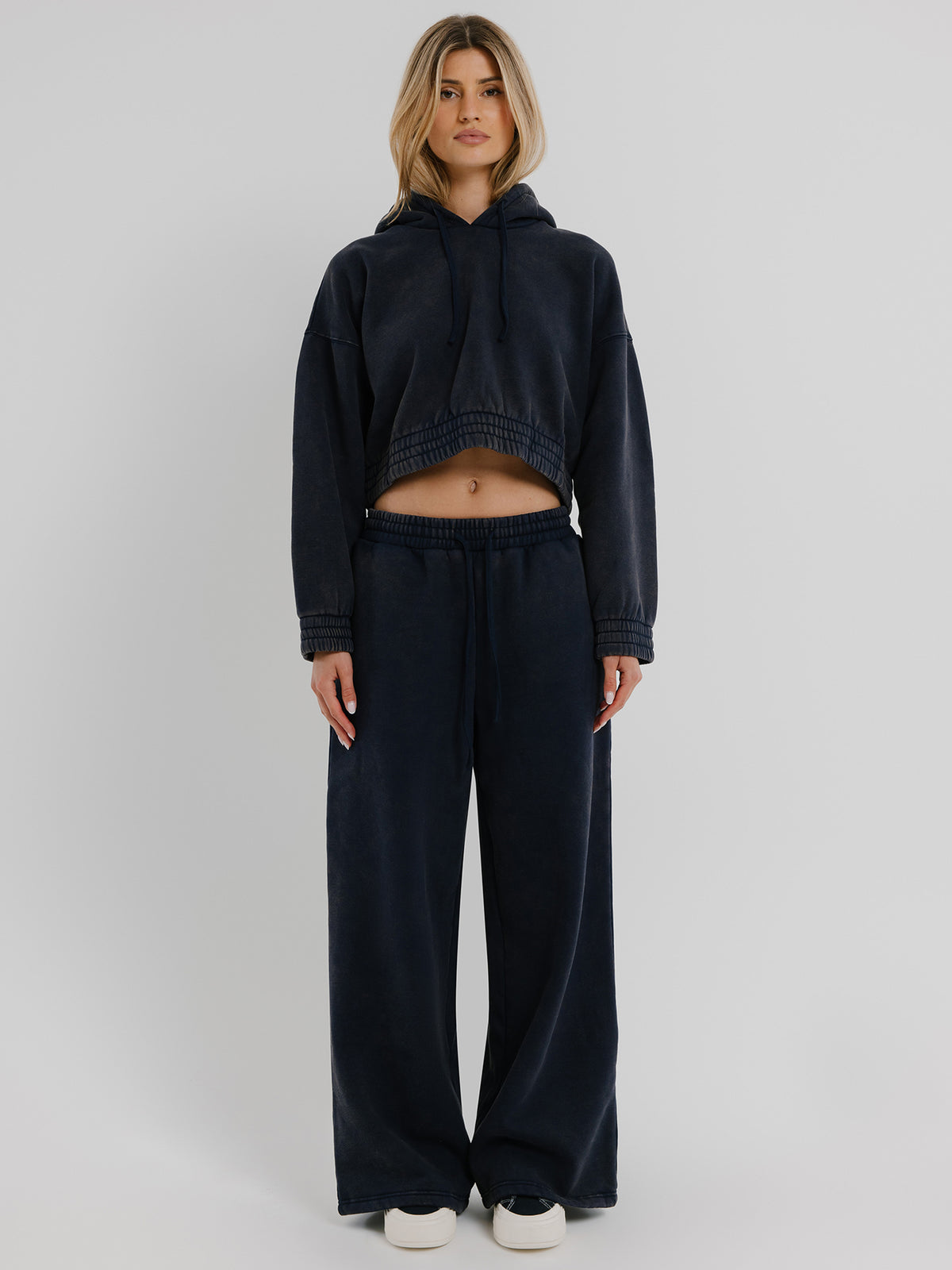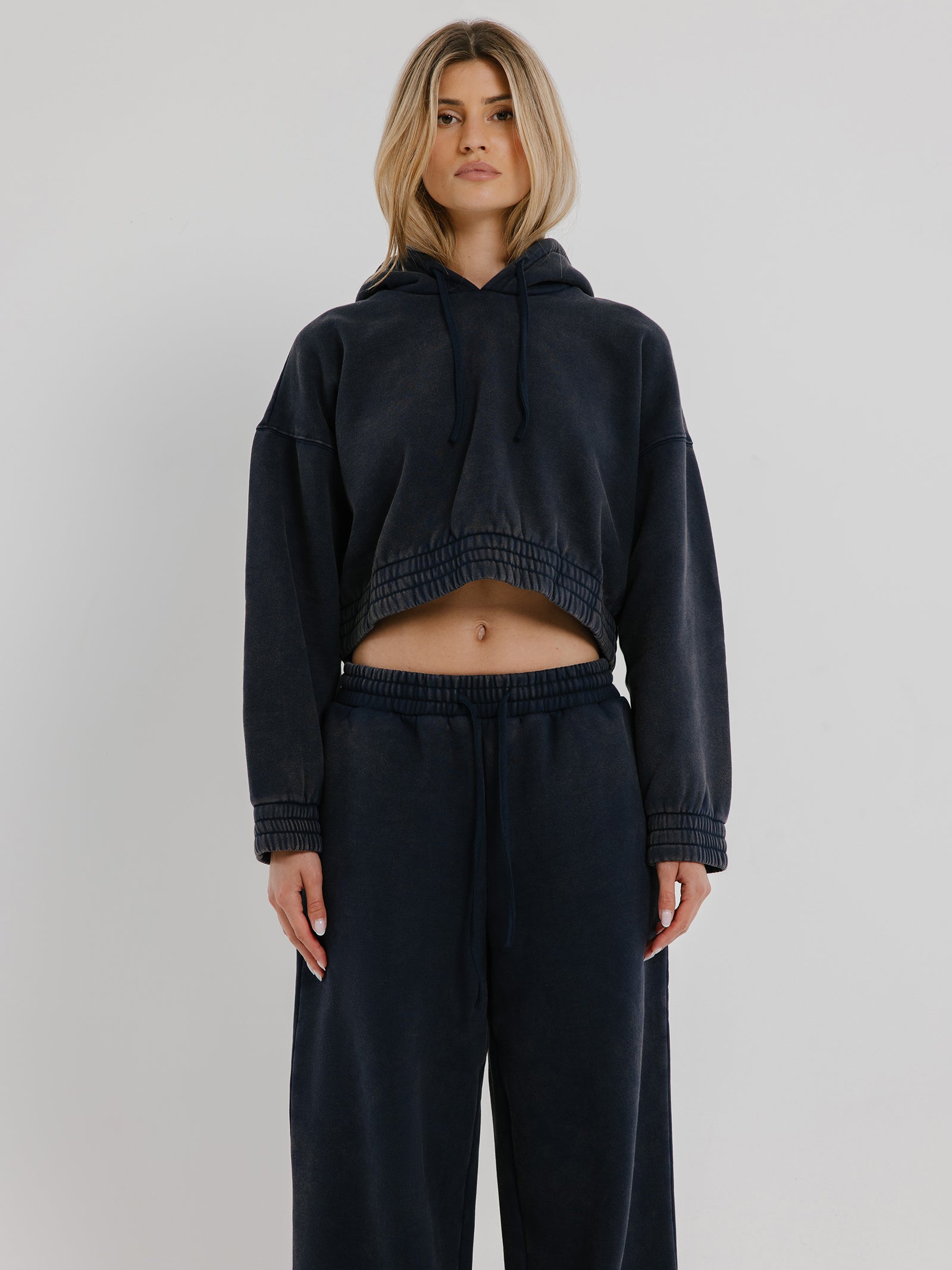 The Ryland Crop Hoodie features elasticized and ribbed trims, a front kangaroo pocket, and an adjustable drawstring hood for ultimate comfort and functionality.