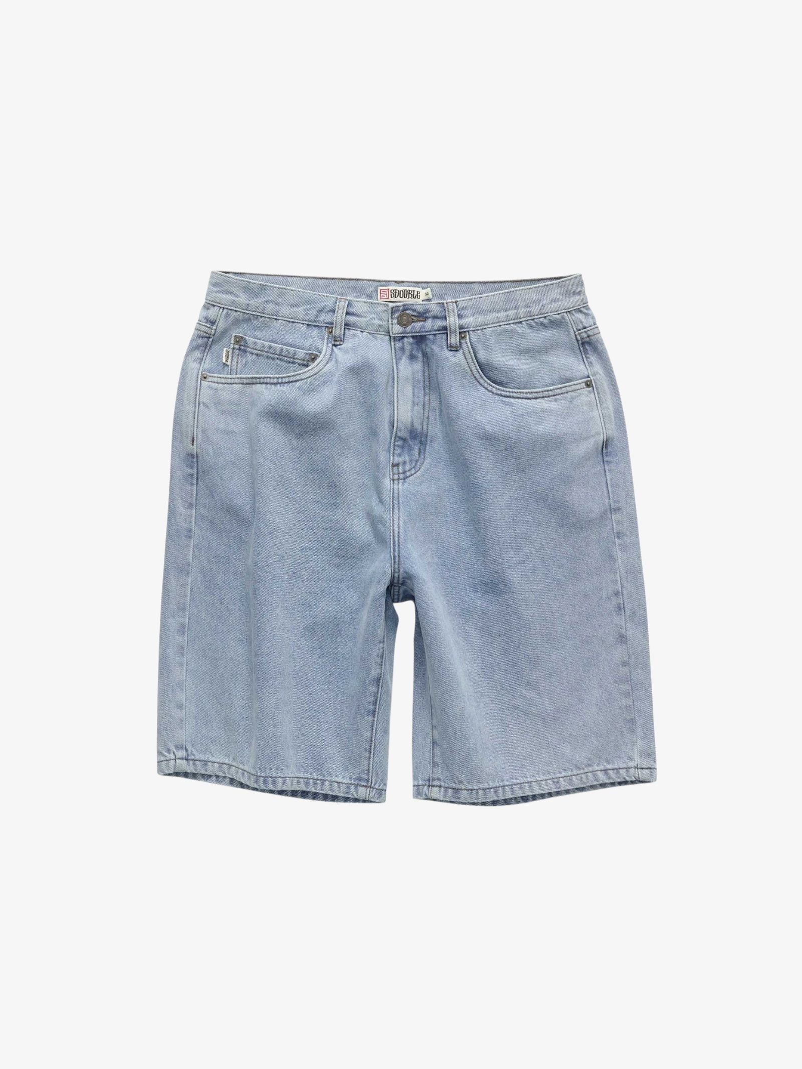The Denim Standard Shorts by S-Double is a classic 5-pocket design bottom cut straight with a 10" inseam, crafted from unwashed, unbleached cotton denim with external rivets for re-inforcement.