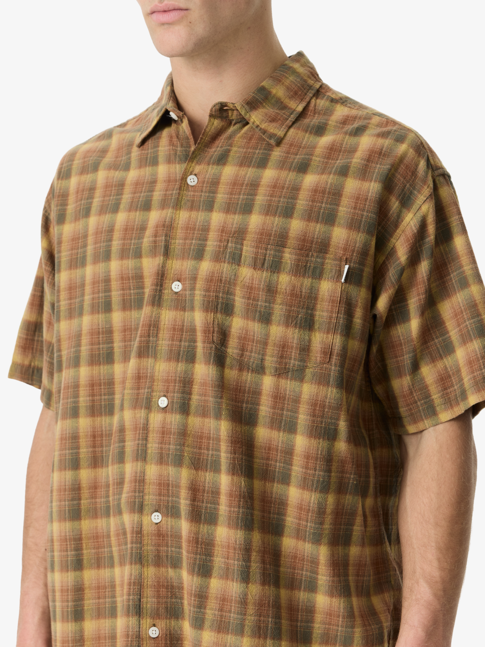 The Village Short Sleeve Shirt by S-Double is crafted from a breathable cotton blend. This shirt features a relaxed boxy fit with a classic collar and front button closure.