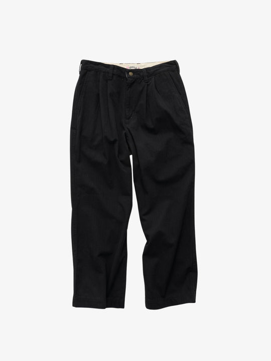 The Wide Cut Field Pant by S-double is designed with a full, loose silhouette that supports natural movement throughout the day. Crafted from herringbone cotton, the fabric brings durability with a subtle woven texture that adds depth. Front pleats and tailored detailing give structure without sacrificing comfort. Finished with practical pockets and branded metal hardware, it balances utility with a refined edge.