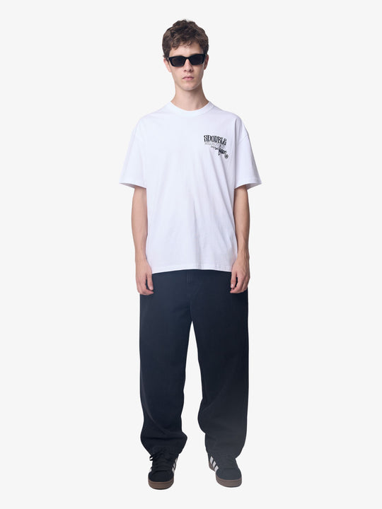 The World Wide Roots Tee by S-Double is a short-sleeve top featuring an oversized, relaxed fit and a classic crew neckline. It is made from cotton jersey and includes a small graphic print on the chest with a large, corresponding designer signature graphic print across the back.