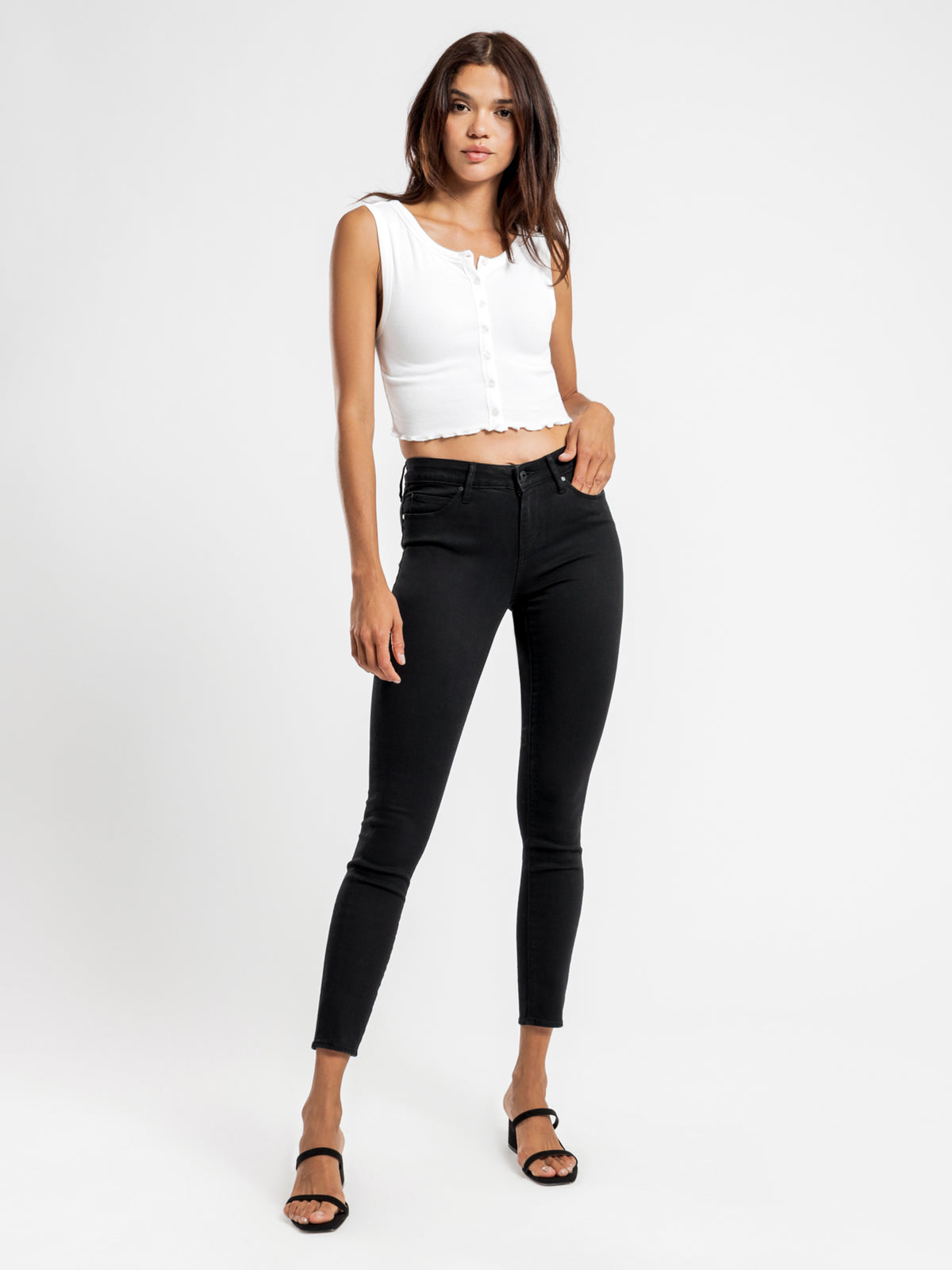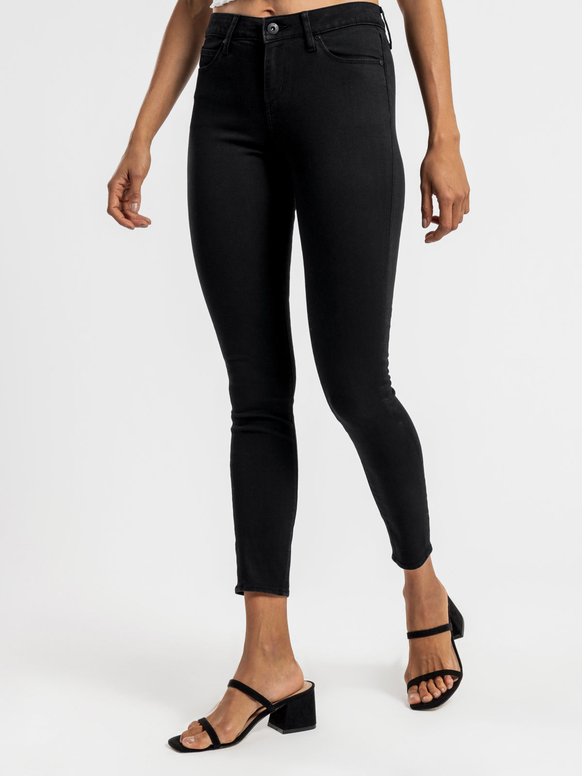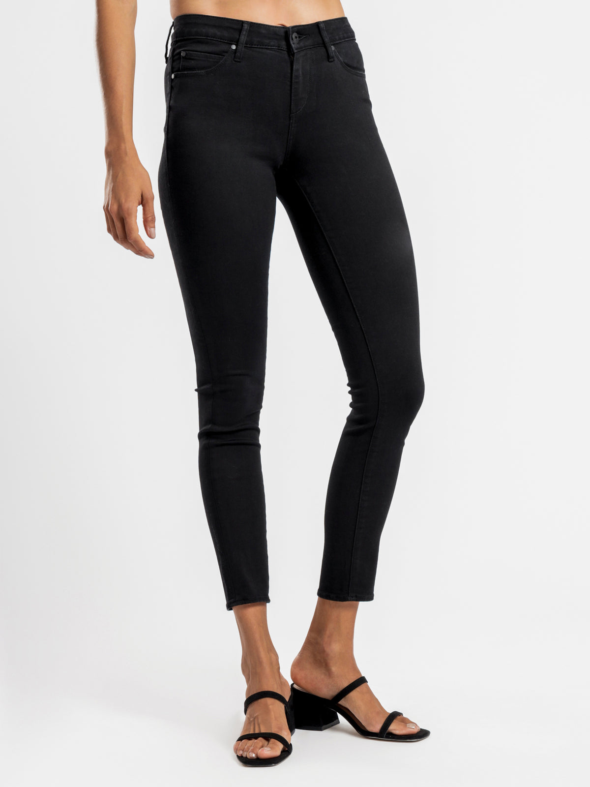 Sizing: This garment is a mid rise skinny fit, and our model is wearing a size 26" / 8
