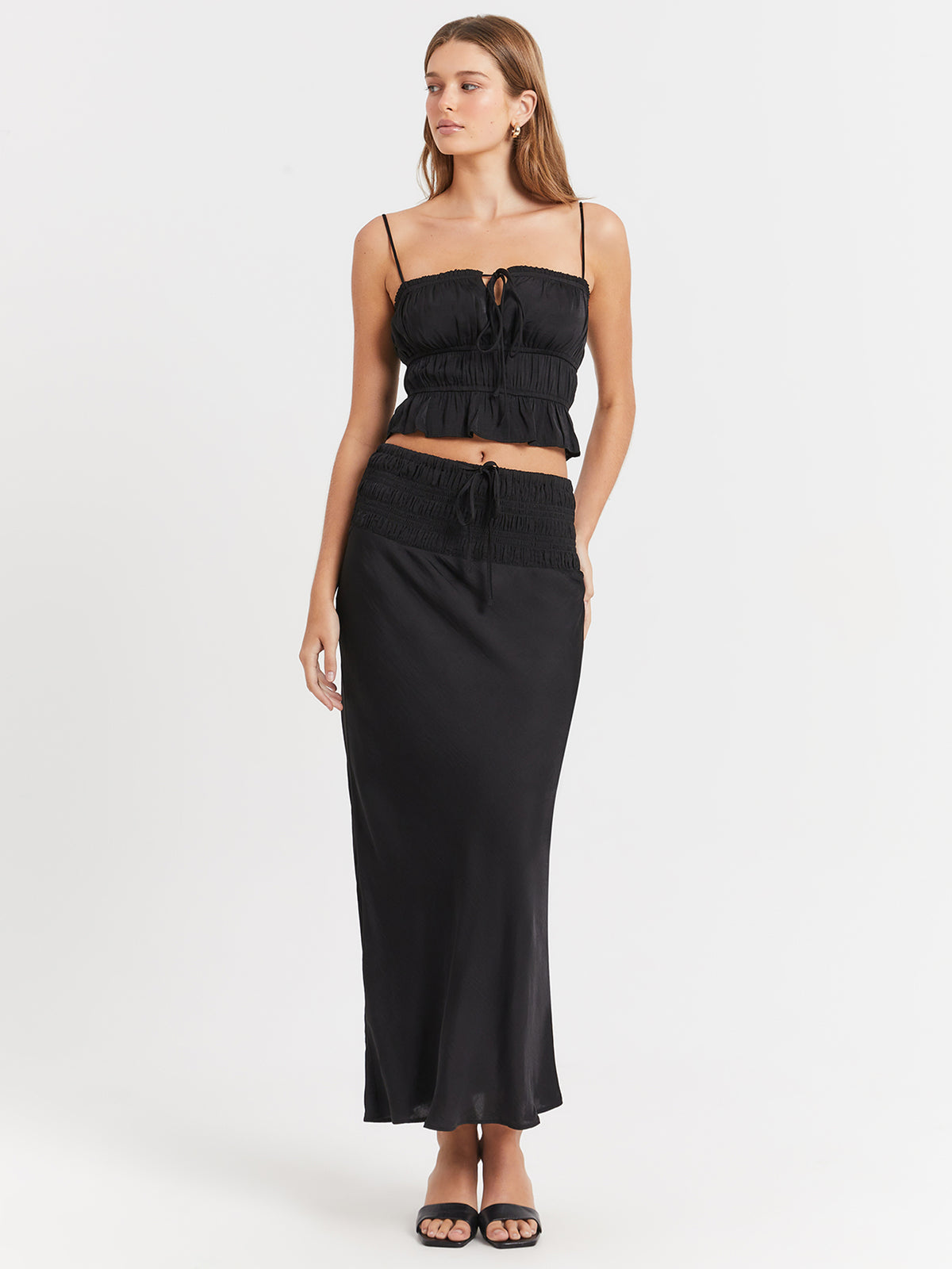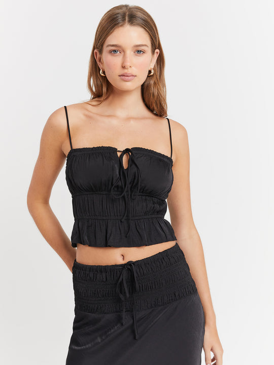 Bring some cute vibes to your wardrobe with the Selma Cami in Black. This beautiful black cami features a charming tie detail and ruching, while the buttery fabric provides comfort & style. Perfect for any occasion, this cami will be a versatile addition to your closet.