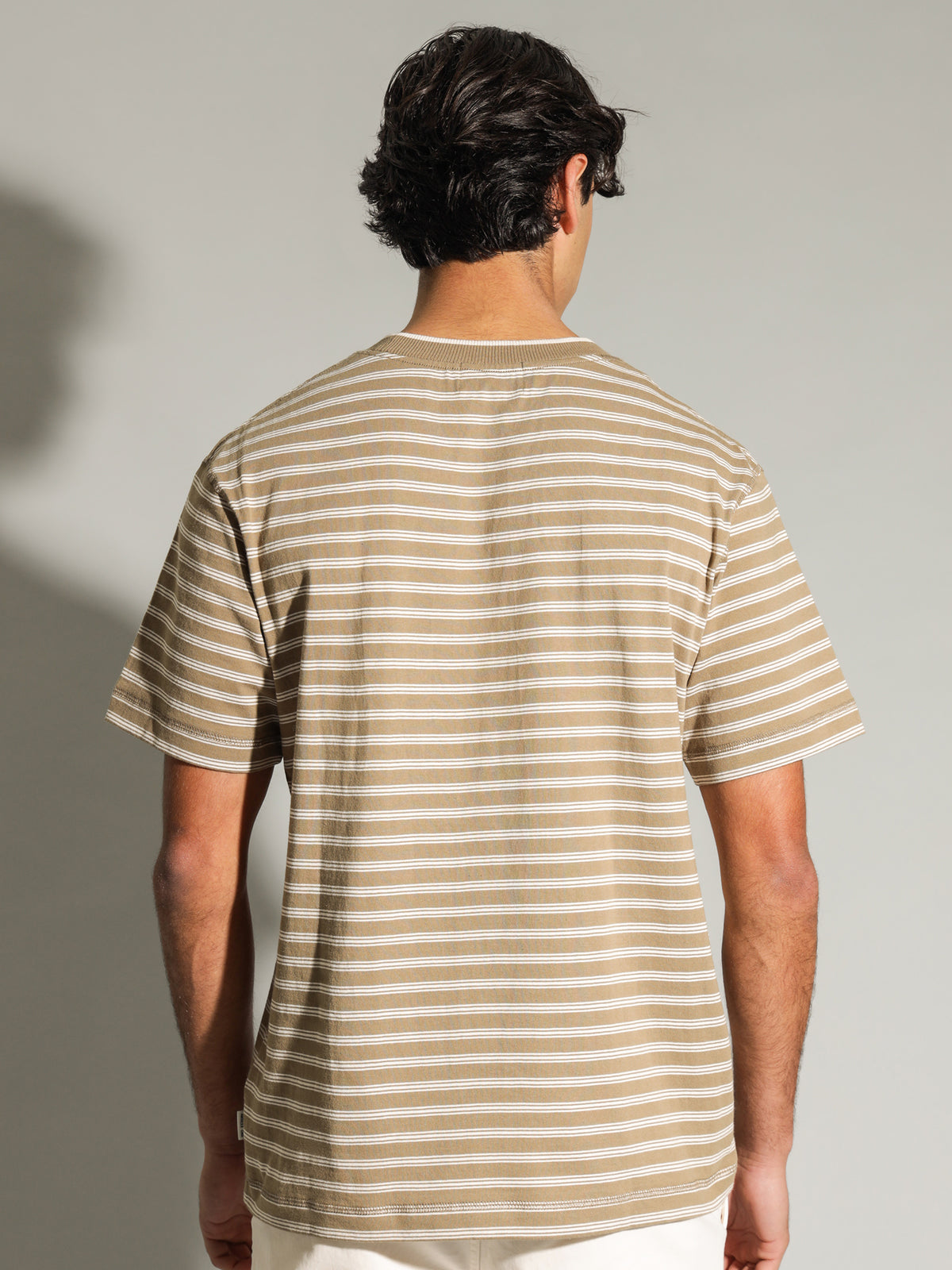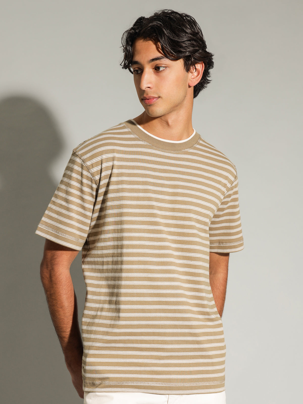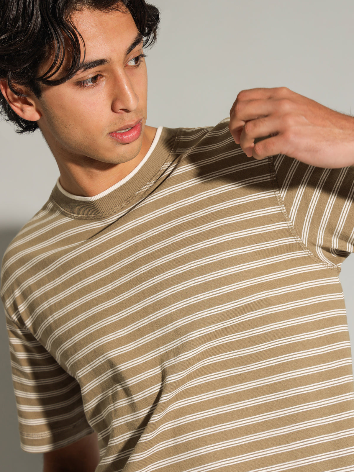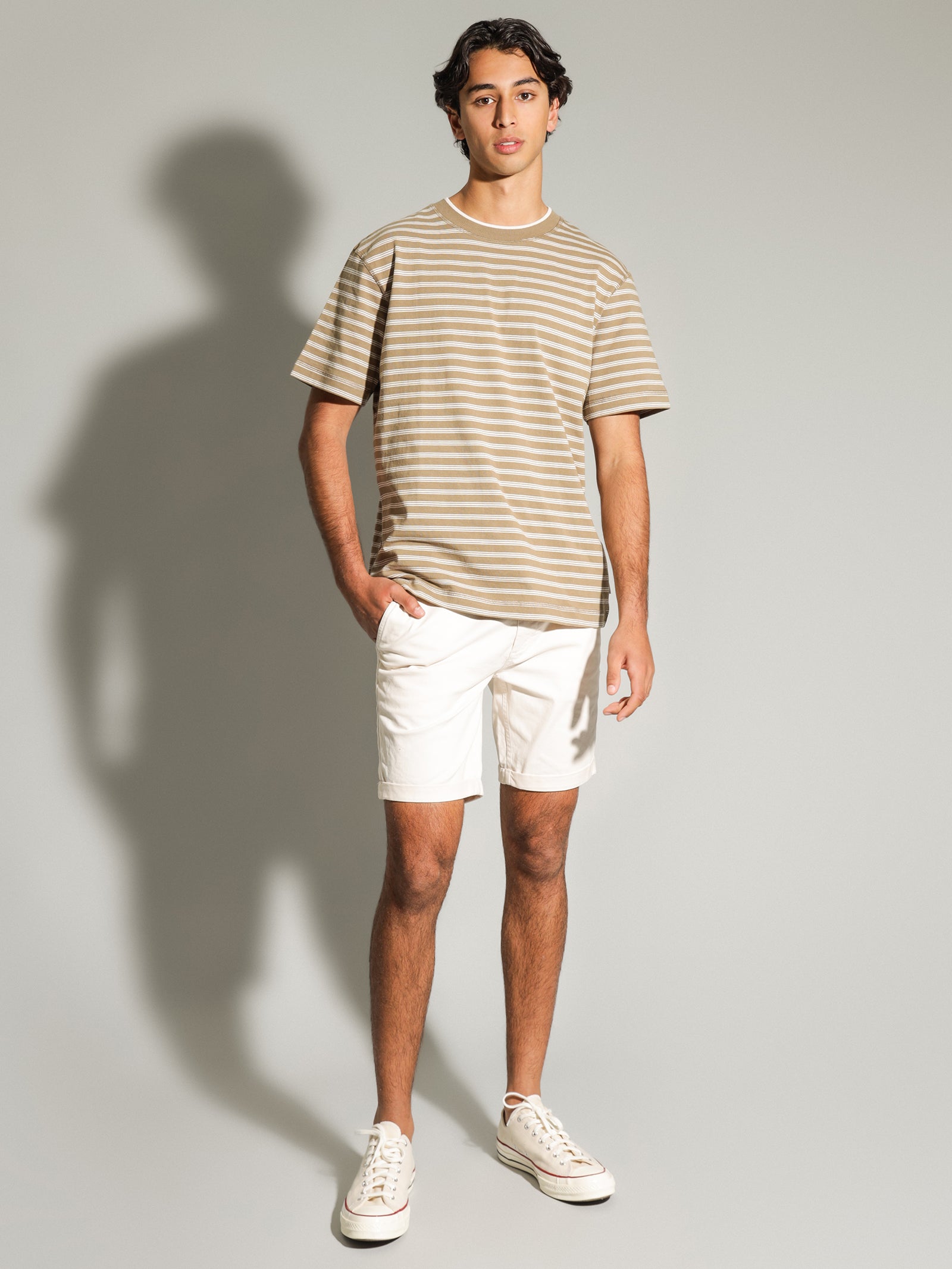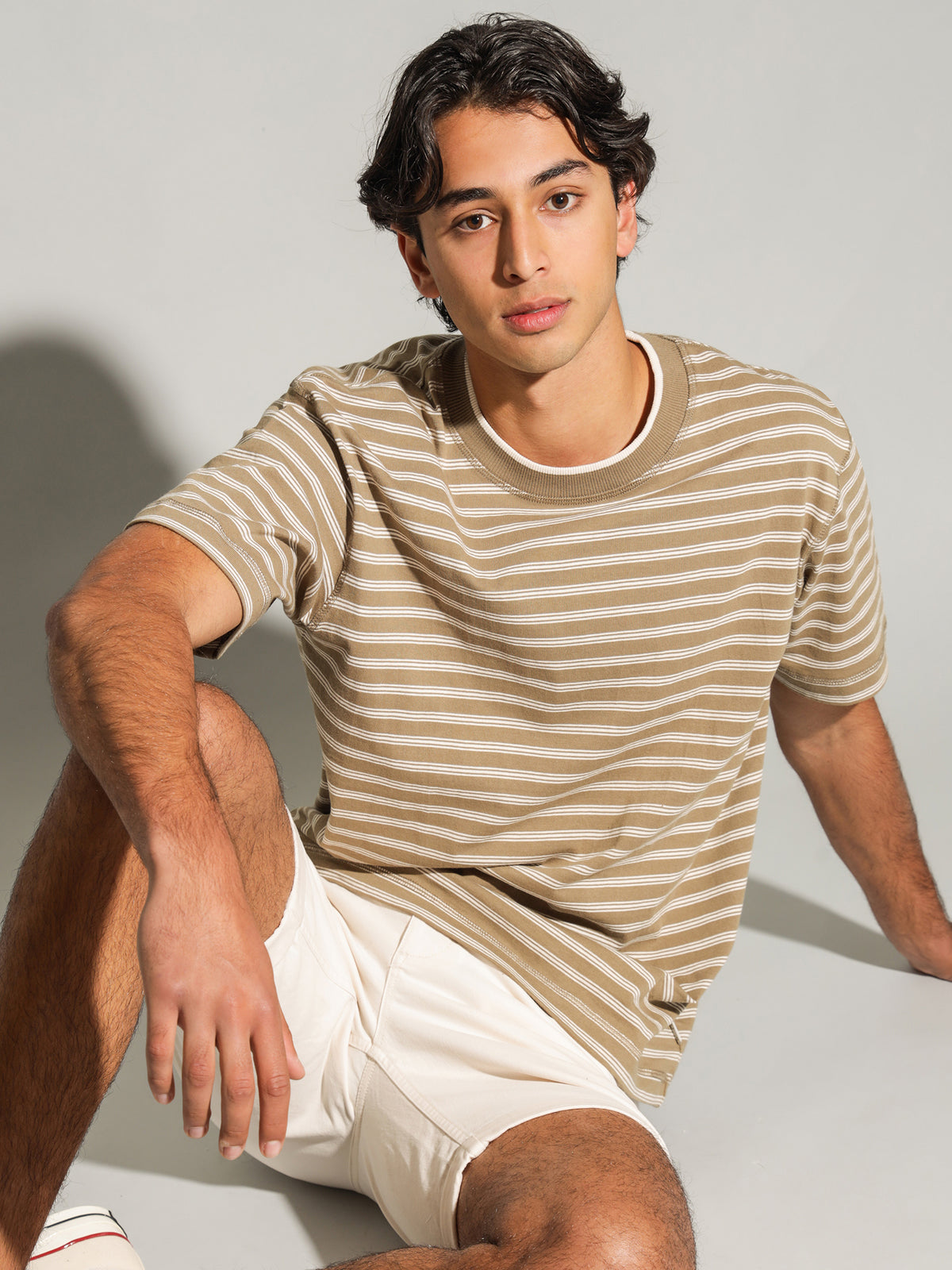 it looks classy and cool on the young model. I am ancient at 72 yrs old but that shirt still looks good on me. With shorts, jeans or chinos it doesn't matter and throw a faded denim jacket over it and let's go.