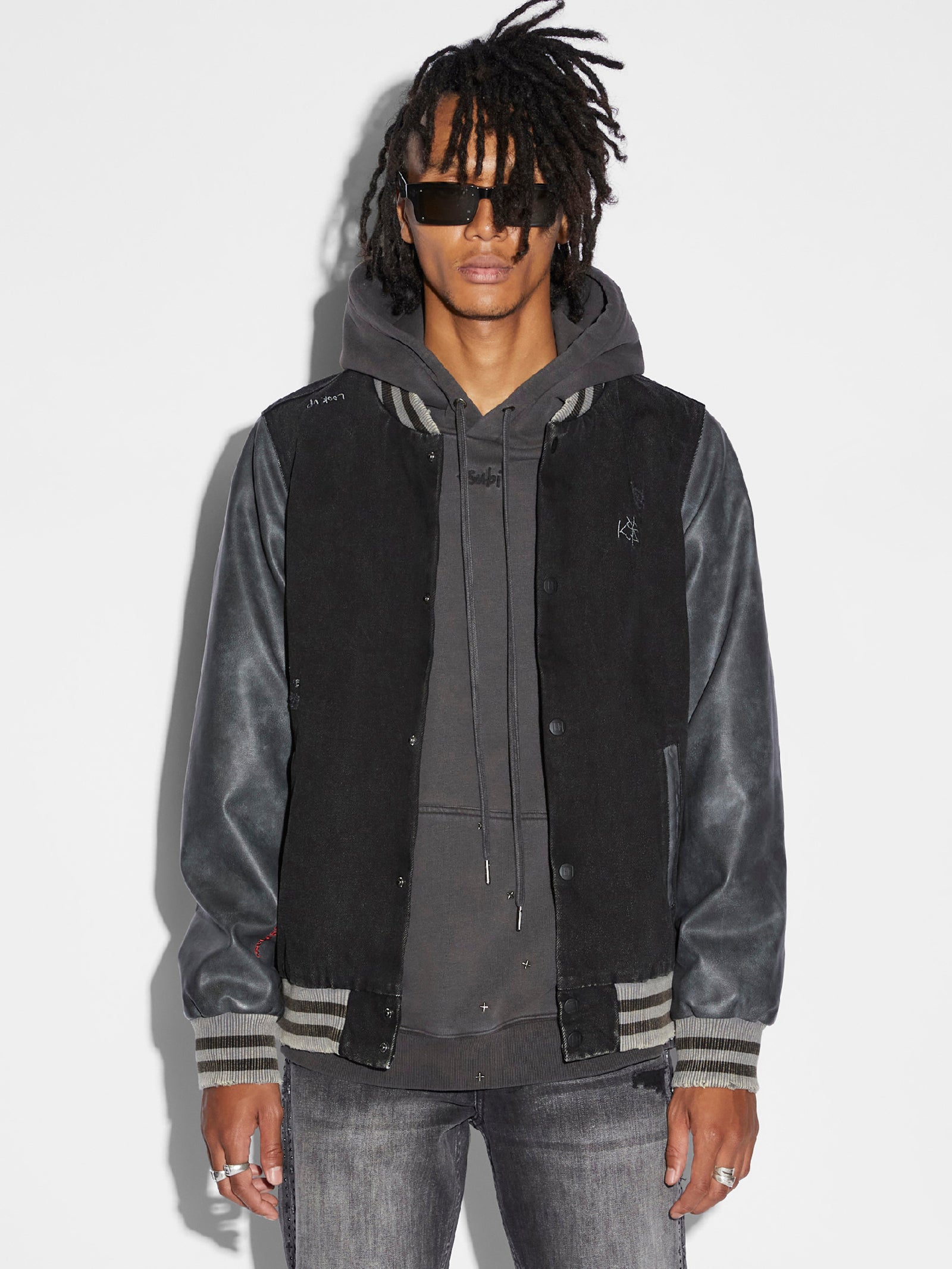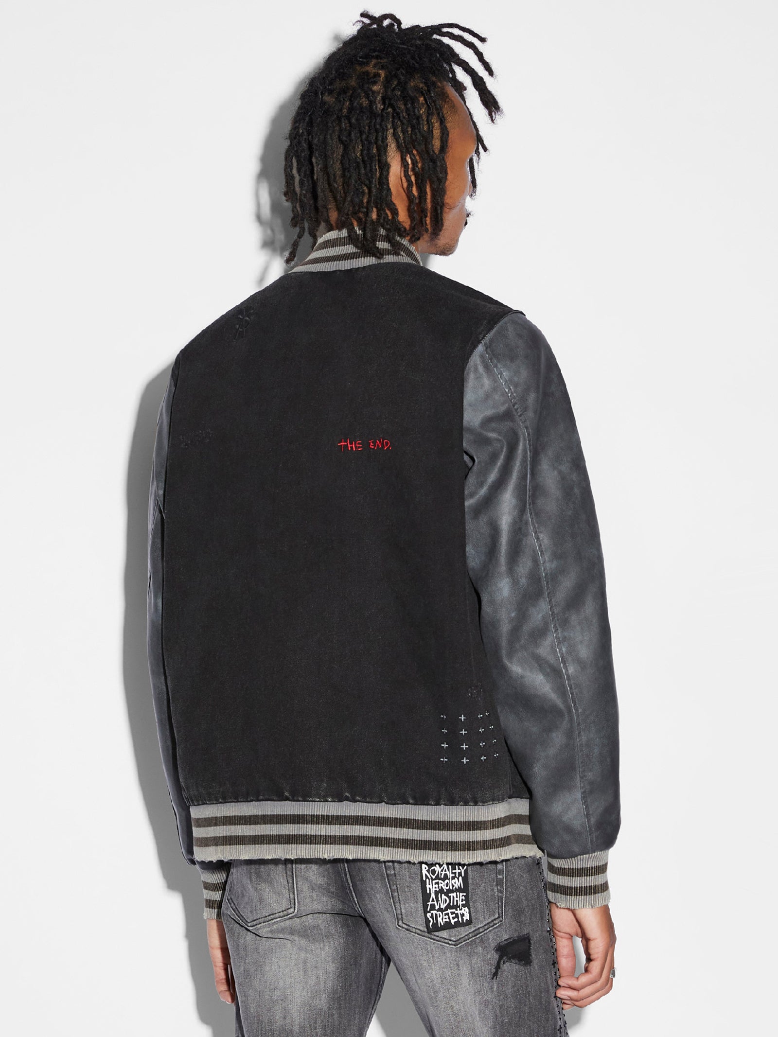 Stay stylish and organized with the Skribed King Jacket. Its zip-up closure and two pockets make for hassle-free use while the branded hardware adds a touch of sophistication. The back cross embroidery adds a unique and trendy element to this must-have piece.