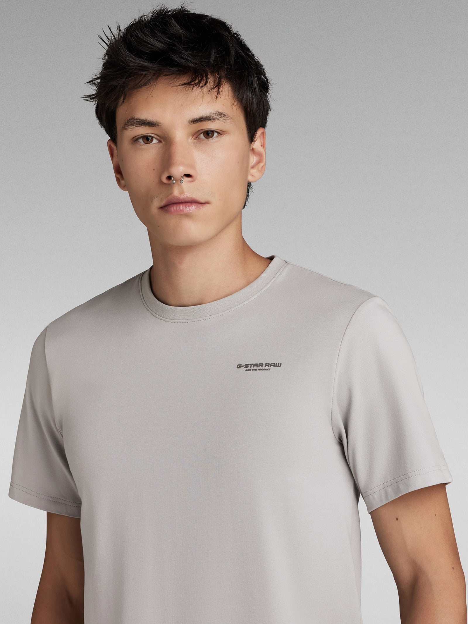 The Slim Base R T-Shirt SS in Grey Alloy offers a sophisticated slim fit and comfortable round neck design. Made with 100% cotton, it's perfect for everyday wear. Elevate your wardrobe with this stylish and versatile short sleeve tee.