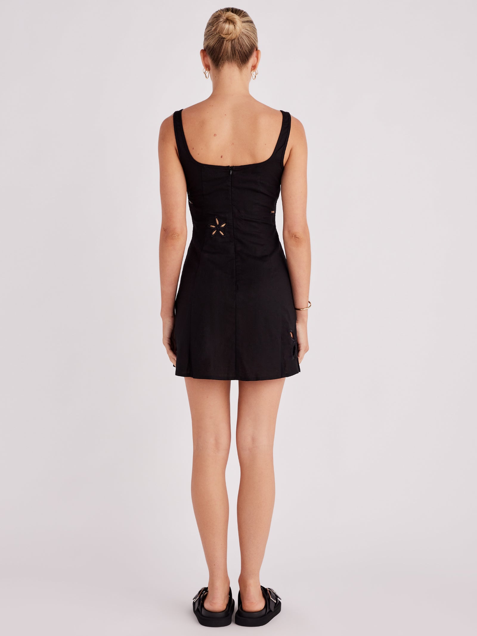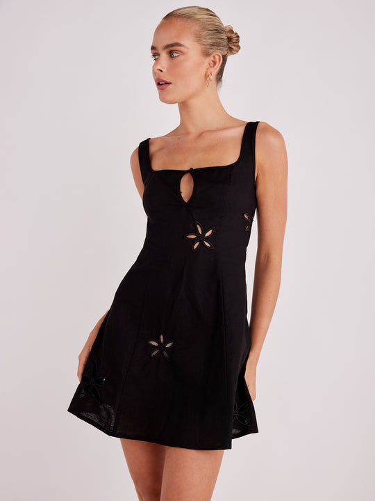 The Flora Mini Dress by SNDYS is a chic addition to your wardrobe. Crafted from a linen-cotton blend, this mini dress features delicate floral cutout details and a square neckline. Its A-line panelled skirt silhouette adds a touch of timeless elegance to any occasion.