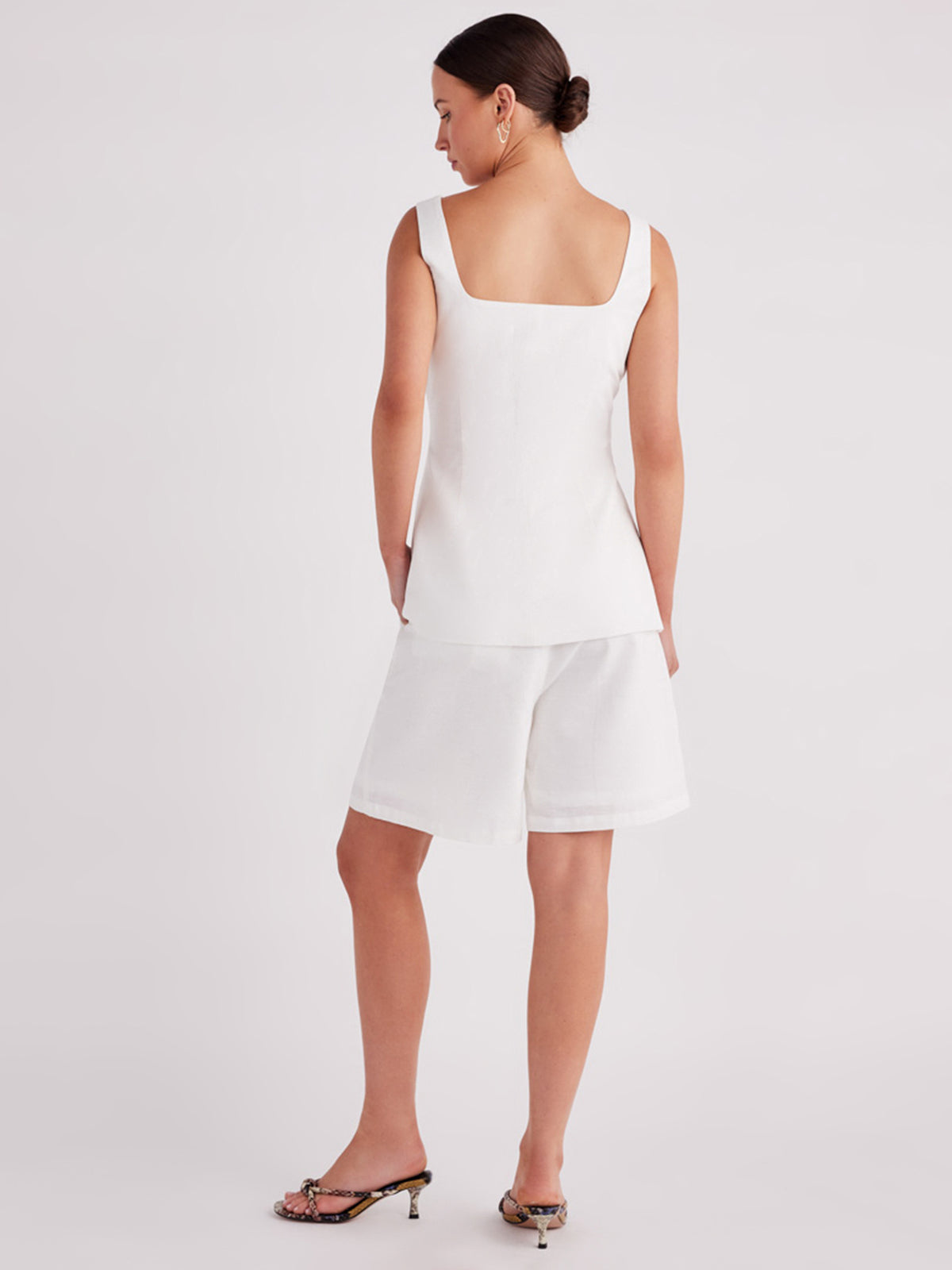 Elevate your wardrobe with the Osten Top by SNDYS, a chic piece crafted from a breathable linen blend. Designed in a long-line vest style, it features a refined square neckline and open center front with lace-up detailing for a customizable fit. Perfect for layering or as a standalone statement, this top exudes effortless sophistication.