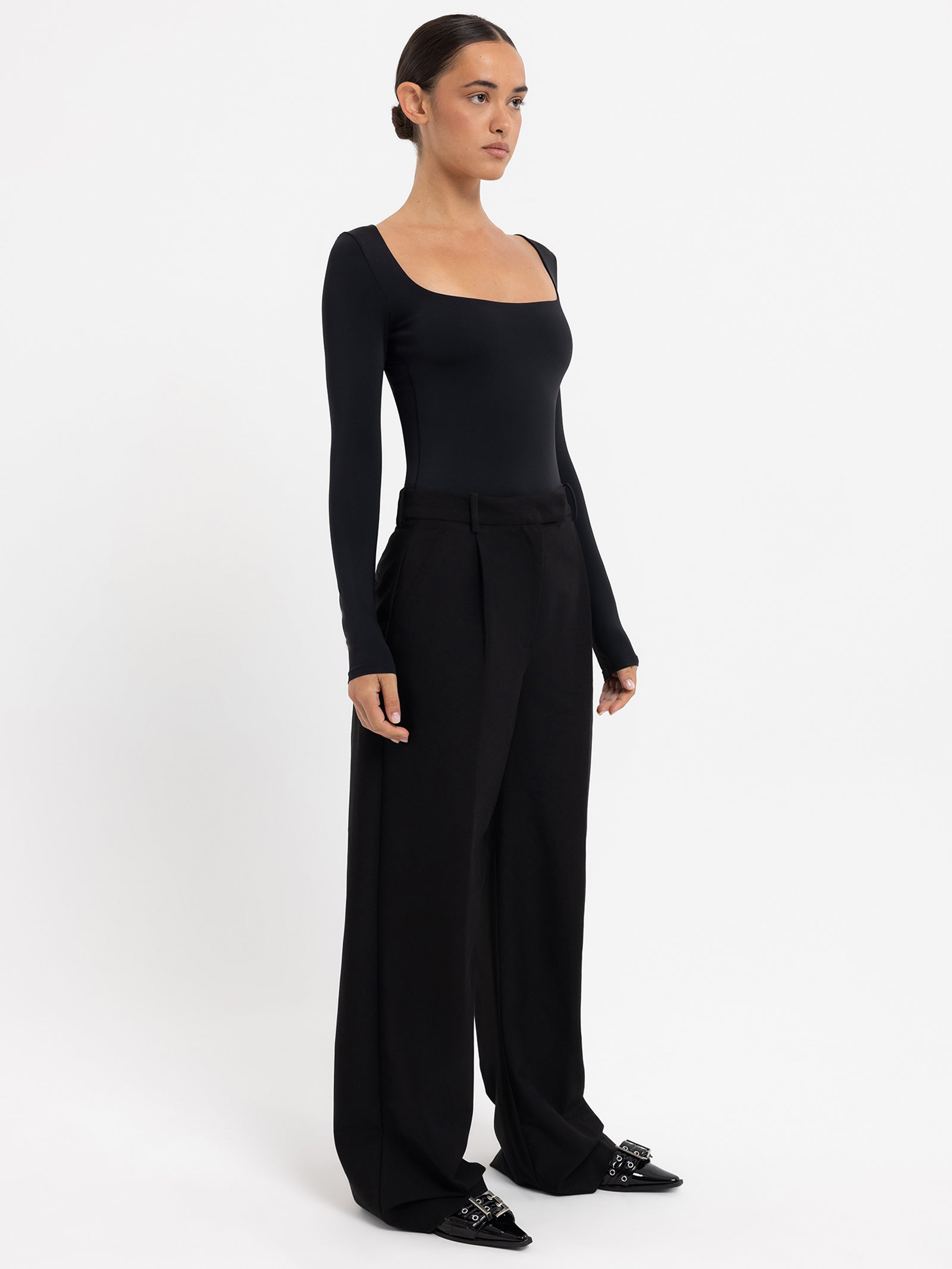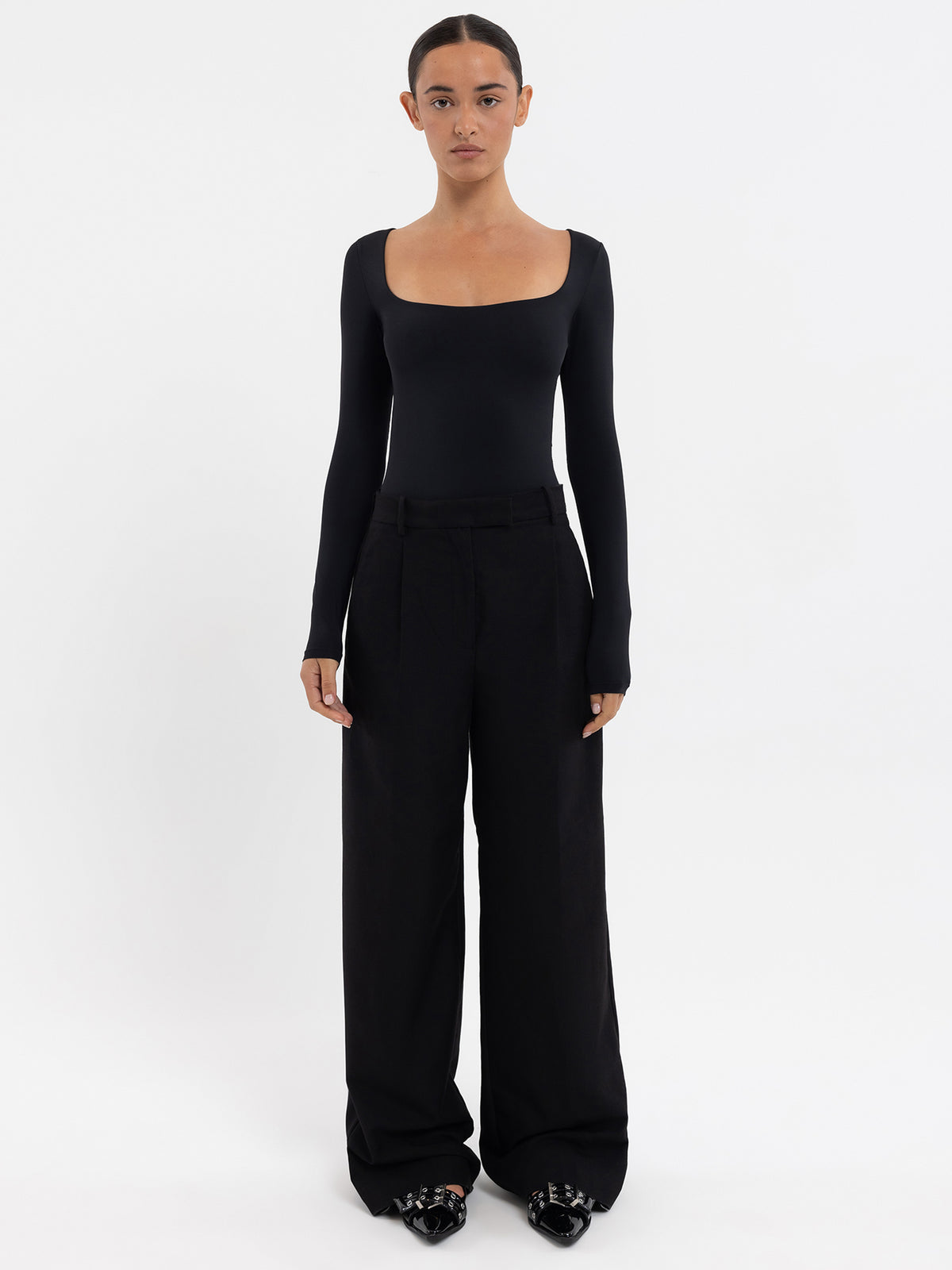 The Spencer Long Sleeve Top offers a sleek and comfortable design with its wide scoop neckline, long sleeves, and buttery fabrication. The stretch and body-skimming fit provide both style and a bespoke look. Perfect for any occasion, this top is a must-have addition to your wardrobe.