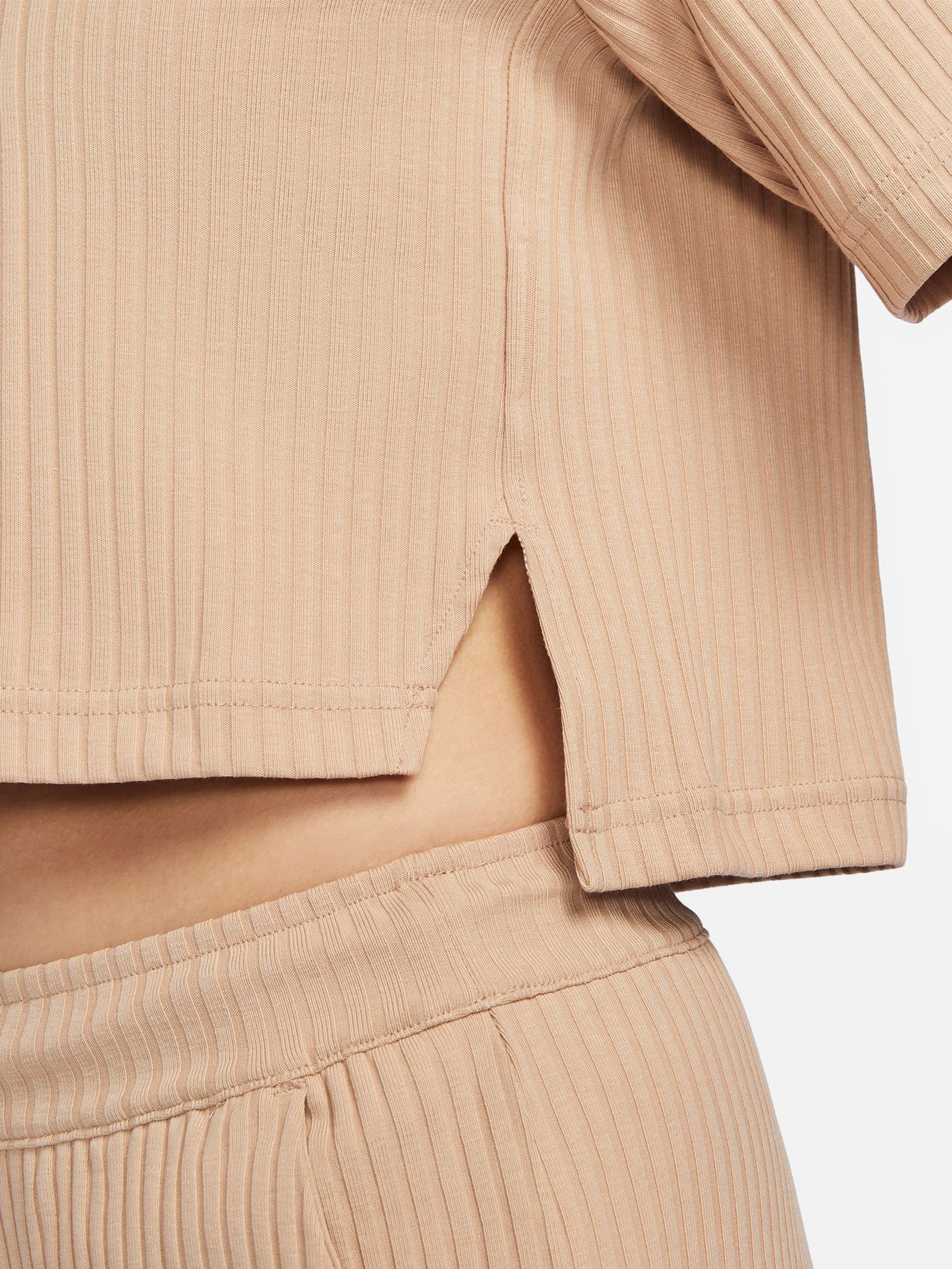 Elevate your off-duty wardrobe with the Nike Sportswear Rib Jersey. Featuring a curved neckline and rib-bound trim, this top delivers a flattering, feminine silhouette with a sporty edge. The soft ribbed fabric offers gentle stretch and comfort, while the embroidered logo on the chest adds a subtle branded finish. Perfect for layering or styling solo on warmer days.