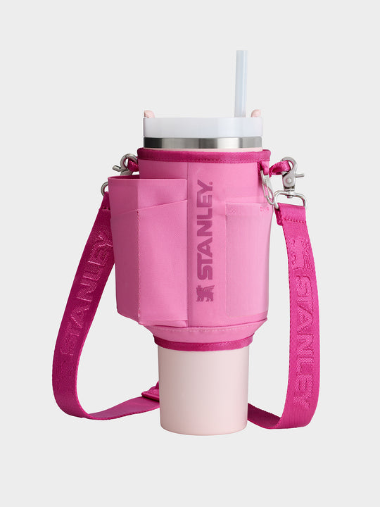 Stay hydrated hands-free with the Stanley All Day 40 oz Quencher Carry-All. Crafted from 100% recycled polyester, this vibrant accessory features a winged bear-patterned band that wraps securely around your Quencher with a double snap closure. The adjustable strap lets you sling it across your body for convenience.