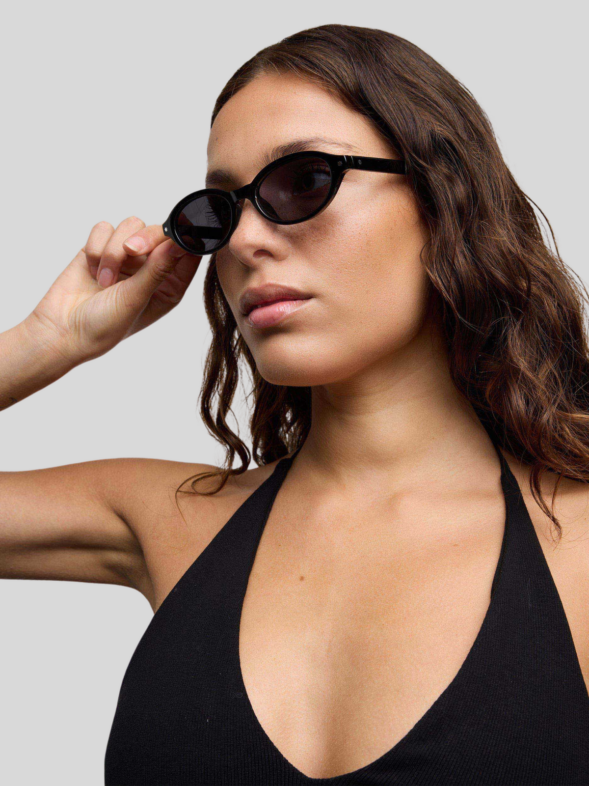 The Nolan sunglasses in Elysium Double Black / Ink Pol by Szade features a bold, regular sized oval frames crafted from recycled materials.