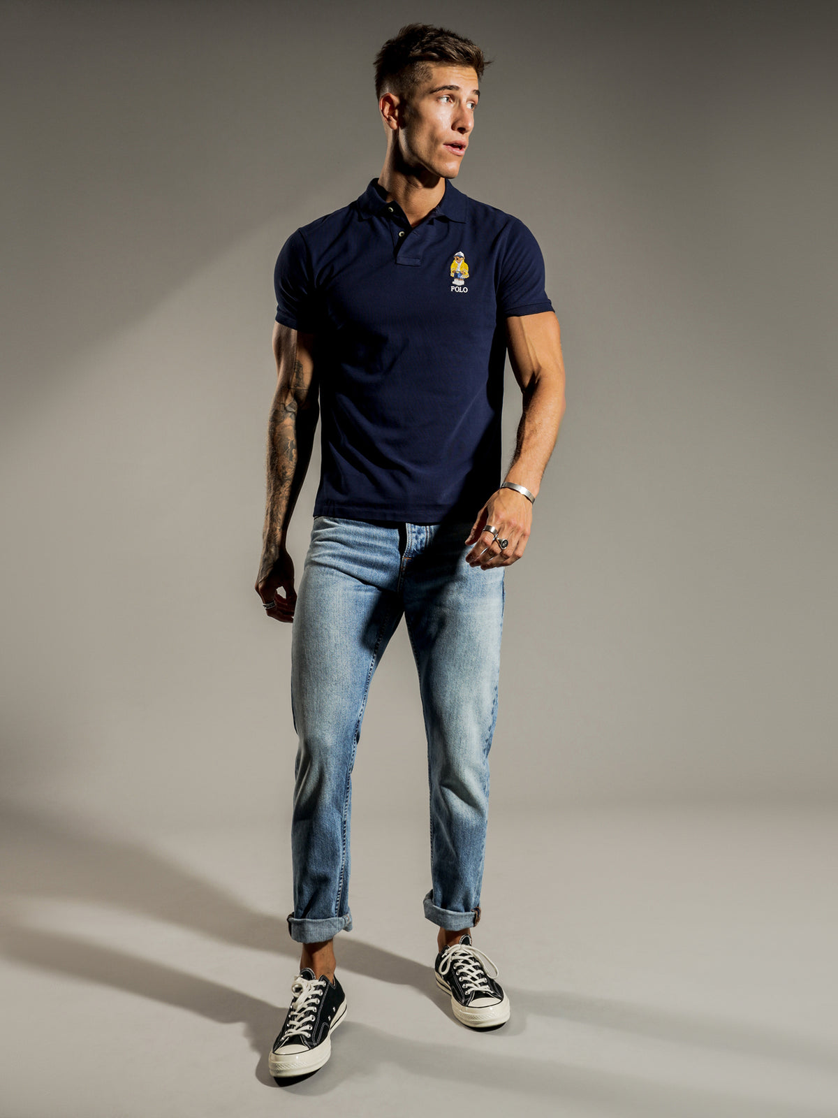 Sizing: This garment is a regular fit, and our model is wearing a size L