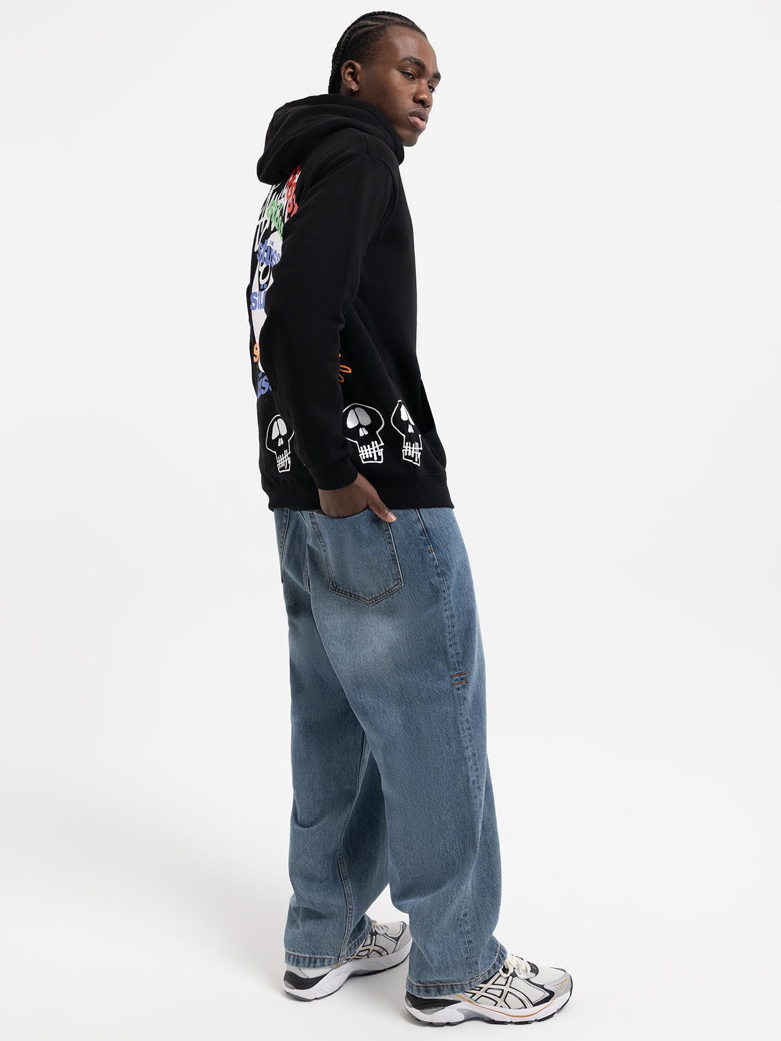 Stay warm and stylish with our Test Strike Fleece Hood. This hooded sweatshirt features graphic designs on the side and back, as well as branding on the left chest. The elasticized cuffs with ribbed finishes ensure a comfortable fit. Perfect for any weather, this hoodie is a must-have for your wardrobe.