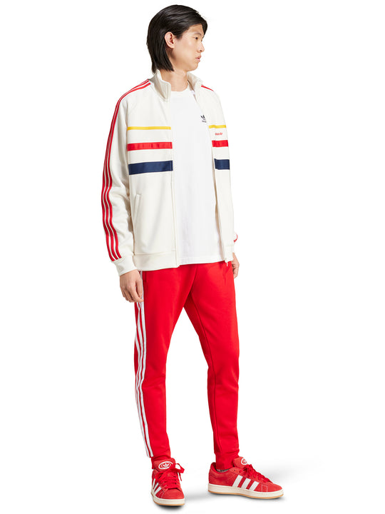 Luxuriate in the perfect fit of our signature full zip with a stand-up collar. Made from a blend of 70% recycled polyester and 30% cotton, this track jacket exudes luxury with its side pockets and high neckline. Adorned with our exclusive logo on the left chest, and finished with ribbed cuffs and hem, it is the epitome of elegance and style.