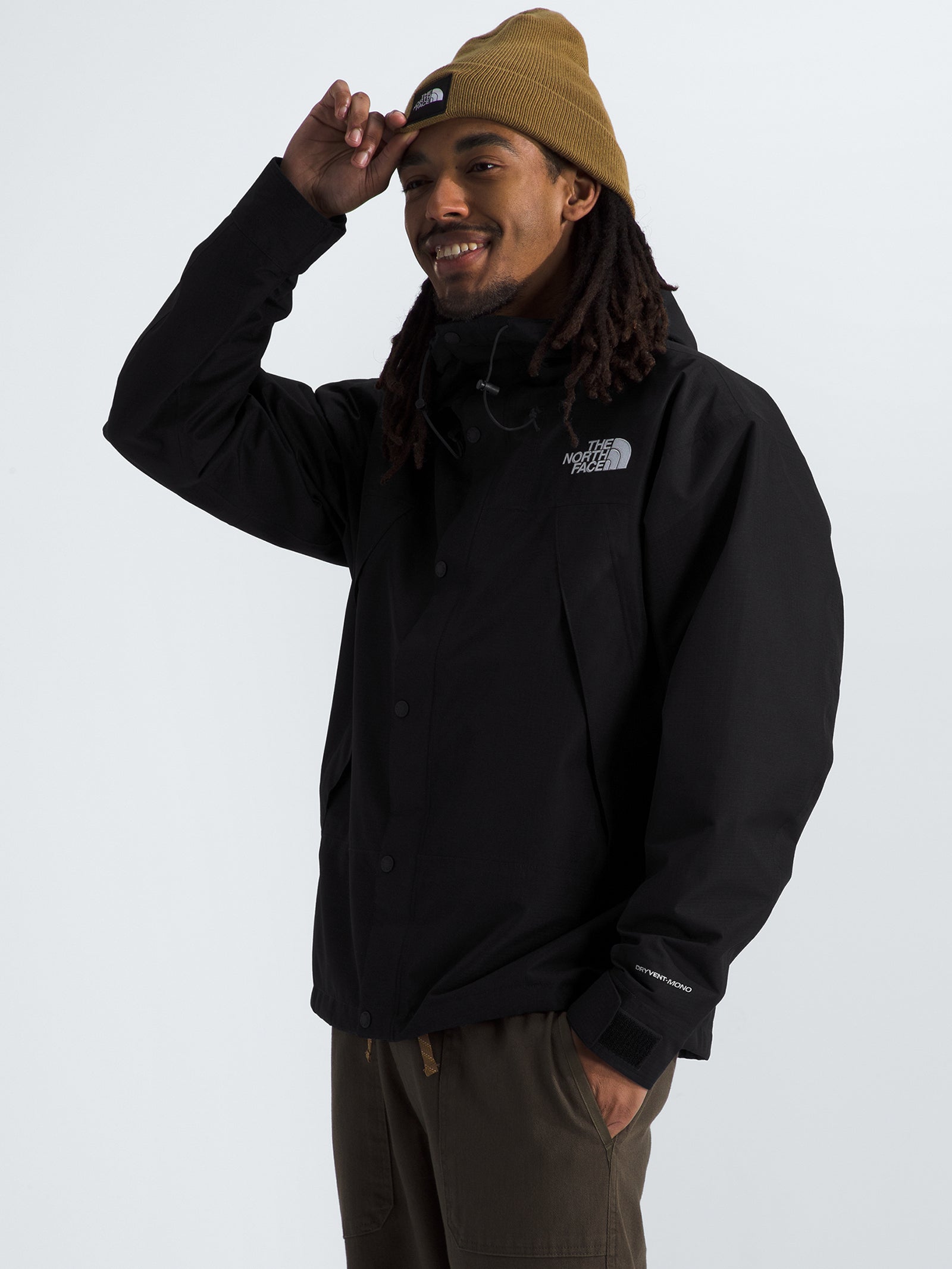 The Men's DryVent Mono Mountain Jacket by The North Face features the DryVent Mono membrane and a non-PFC DWR finish. This jacket offers a three-piece hood, storm flap, and internal drawcord.