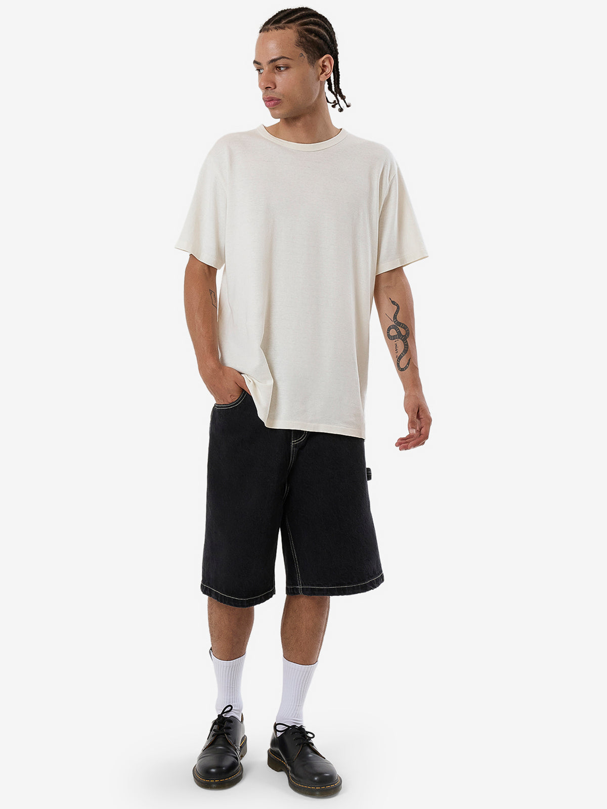 Featuring a crisp white stitch outline, these denim shorts bring a fresh, contemporary edge to a revived look - Jorts. The belt loops and back logo patch add functional and signature details, reflecting Thrills' commitment to distinctive, modern style. These Big Slacker Denim Short are crafted for comfort and designed to make a statement, perfect for casual days or relaxed outings, embodying Thrills' unique blend of rugged charm and refined aesthetics.