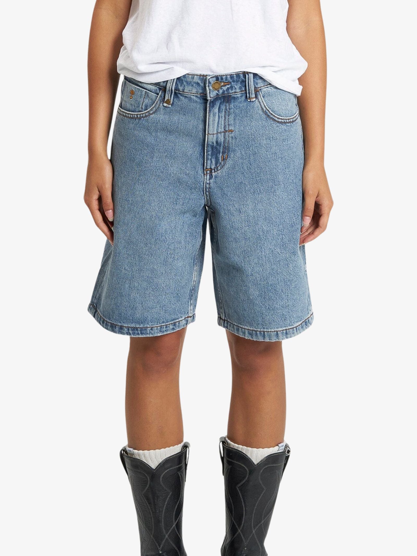 The Jordan Shorts by Thrills is made from 14.2 ounce organic cotton denim and designed with a regular, true-to-size fit. These mid-rise denim shorts feature extra wide legs inspired by Y2K fashion, a classic five-pocket construction, and built-in belt loops.