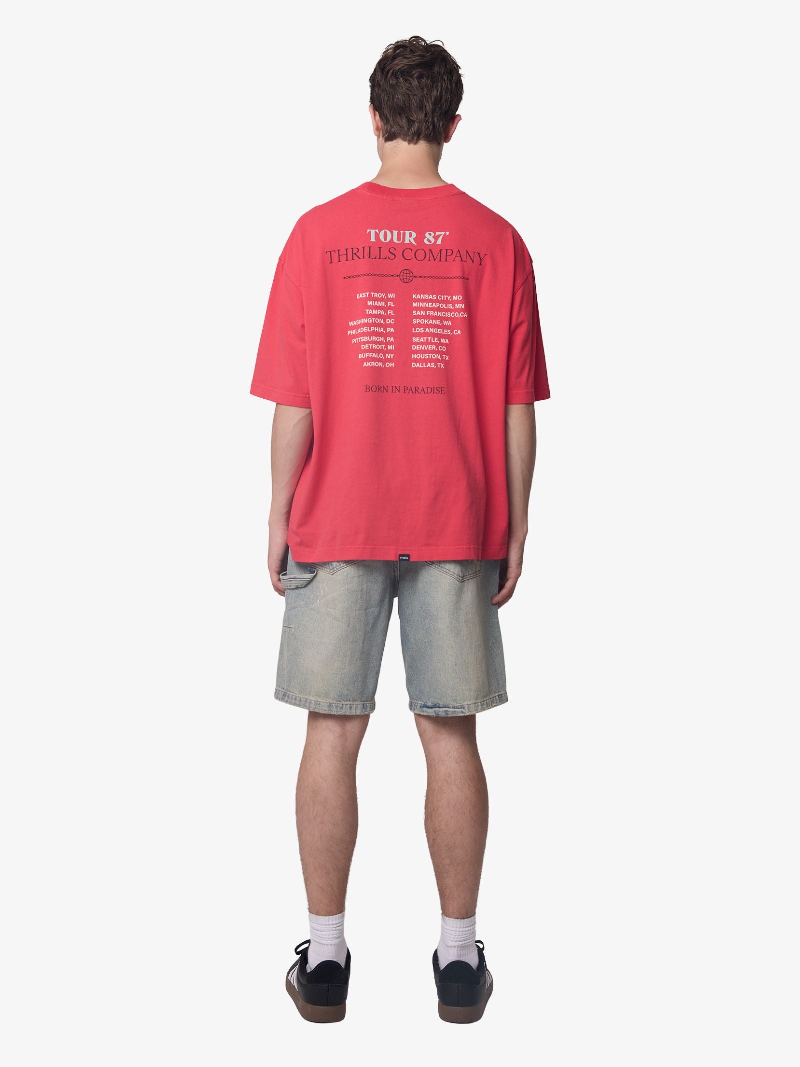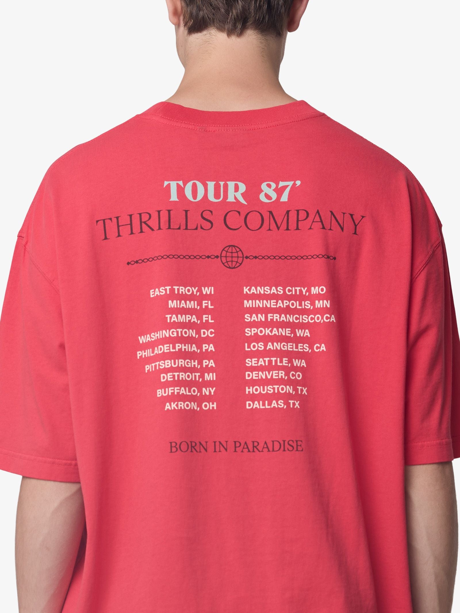 The Metal And Dust Box Crop Tee by Thrills is an organic cotton t-shirt with a structured feel, cut from midweight dry hand jersey. The tee features a boxy, oversized, cropped silhouette and is finished with a bold, raw graphic print on the chest and a tour graphic on the back.
