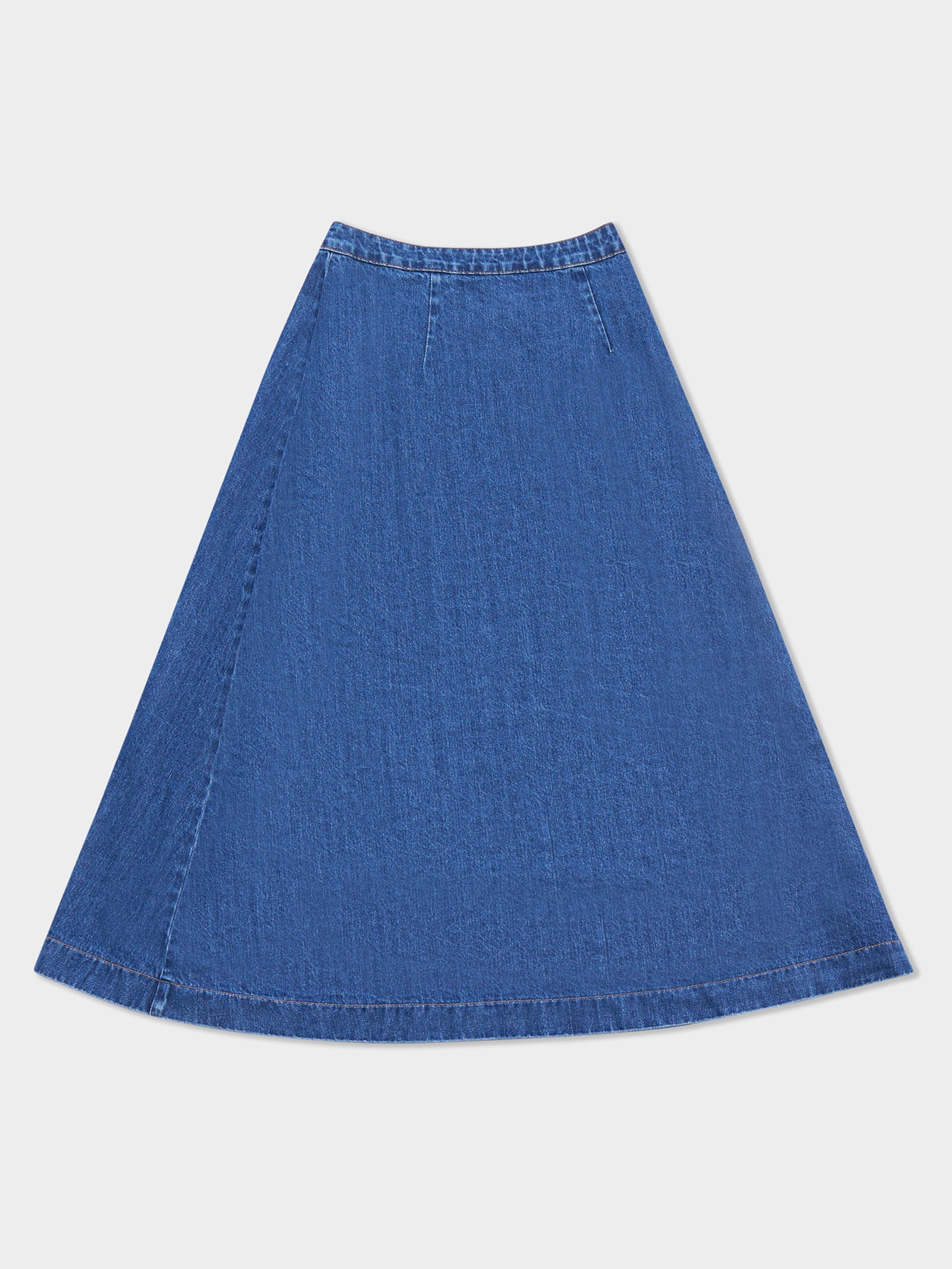 With a wrap front design for a skort-inspired appearance and a button detail at the waist, this skirt boasts a fixed fit for a tailored look. The relaxed fit and rinsed colorway add to the versatility of this piece.