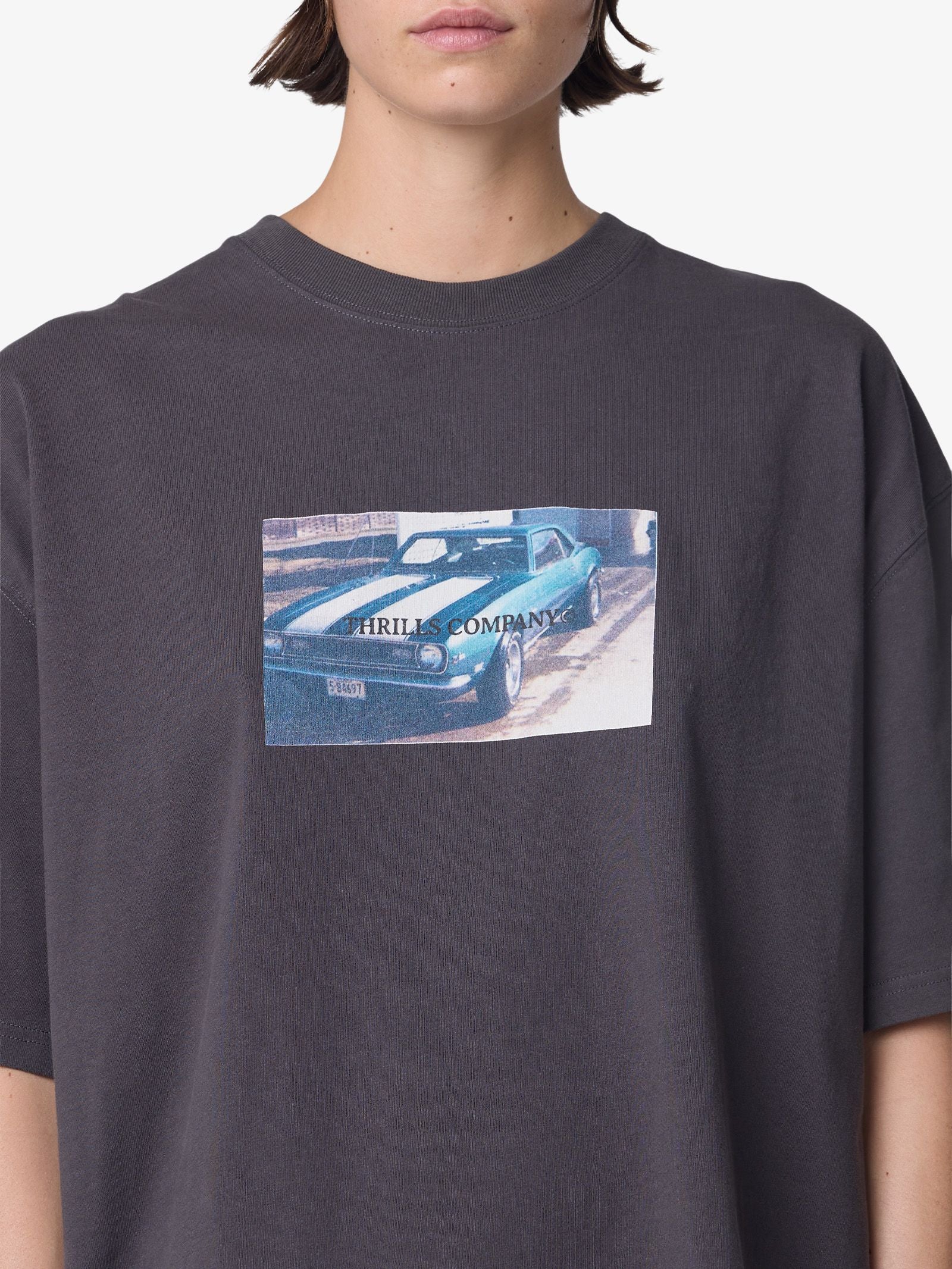 The Precision Oversize Tee from Thrills is cut from lightweight organic cotton jersey with a vintage wash for a worn-in look. It features an oversized silhouette with a classic crew neckline and a bold centre front graphic print.