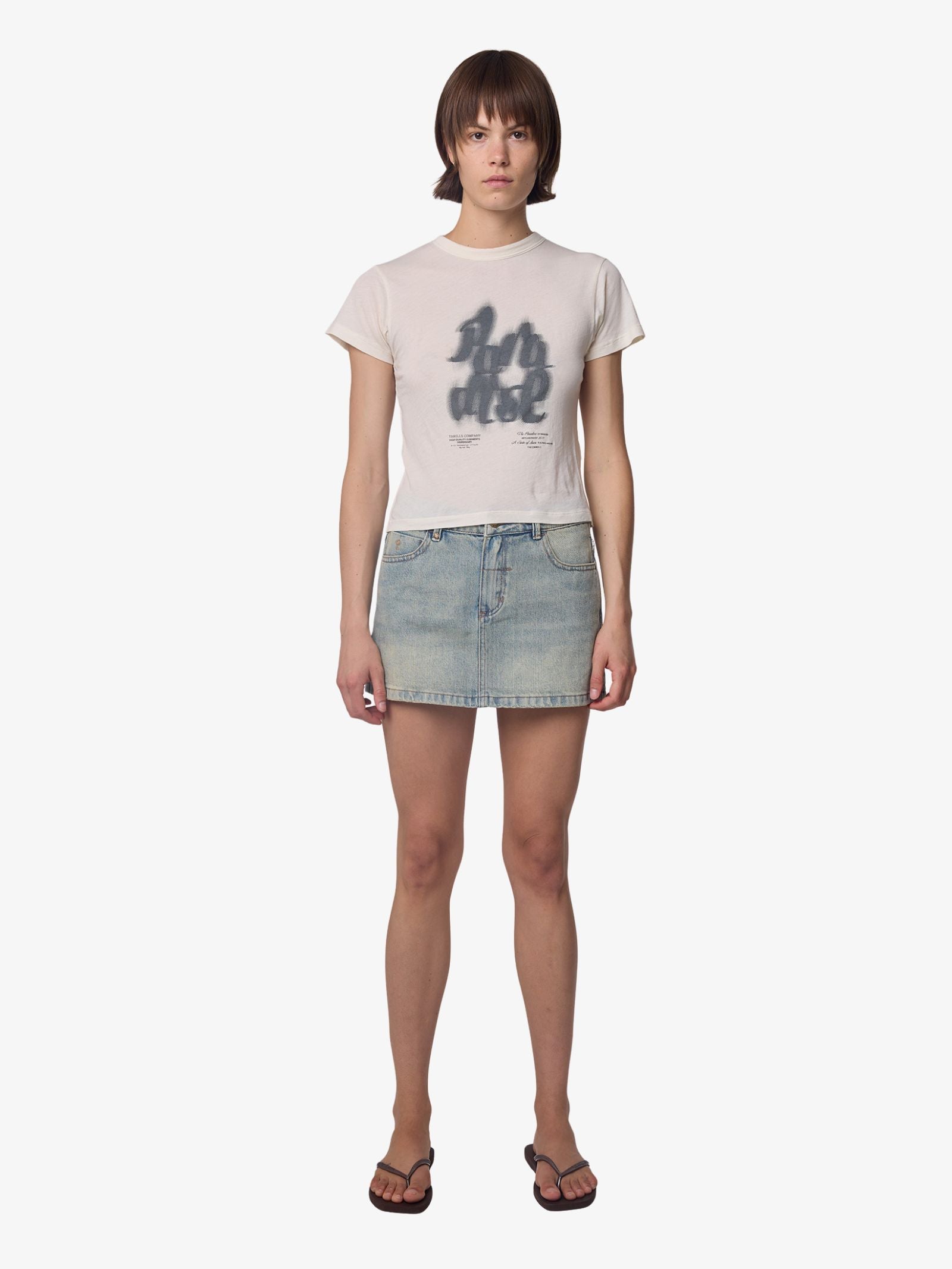 The Sophie Skirt by Thrills is made from durable cotton denim with a faded, light blue wash and designed with a fitted, mini length. This short skirt features classic five-pocket styling and is finished with a natural raw hem or simple edge.