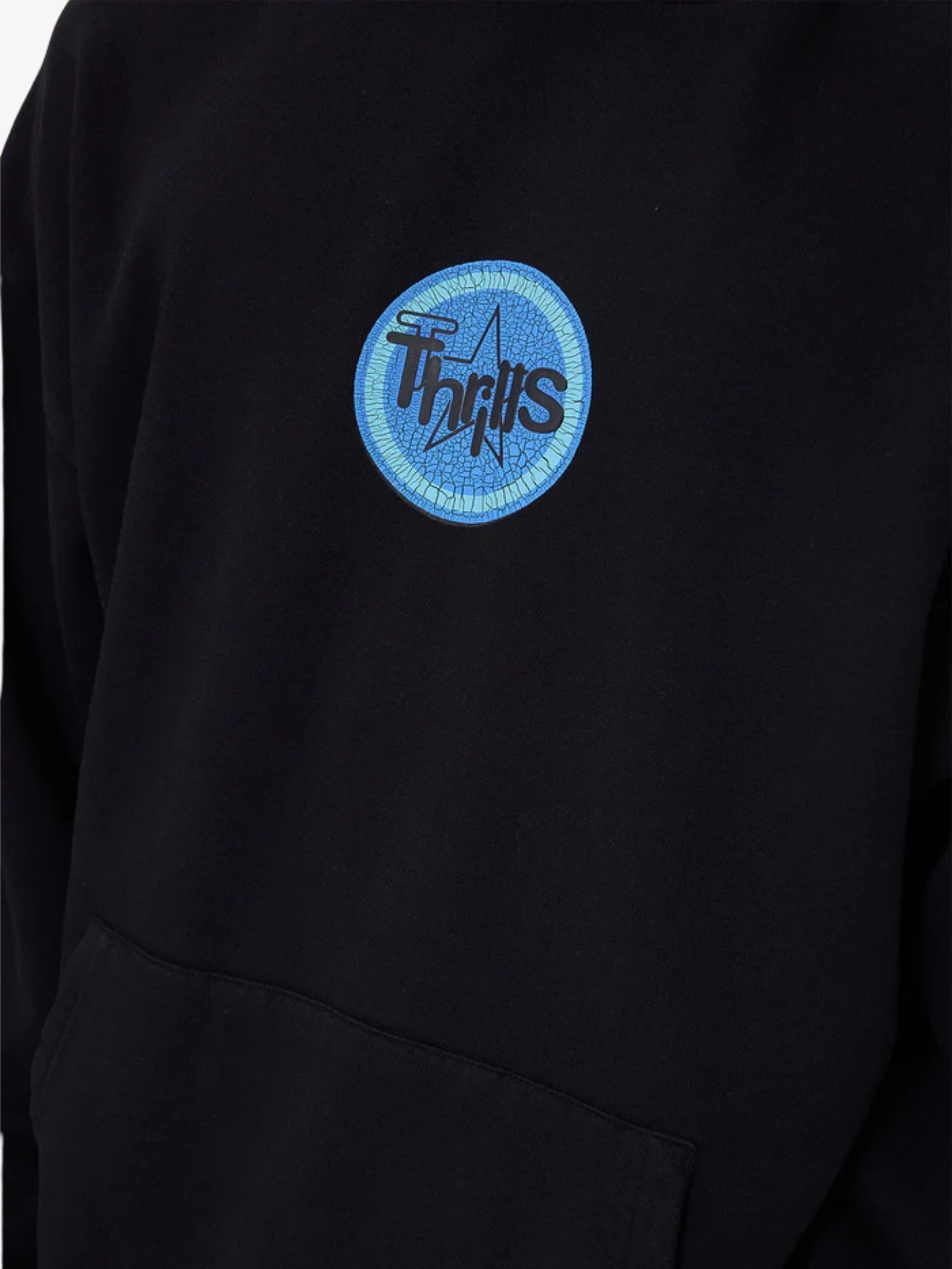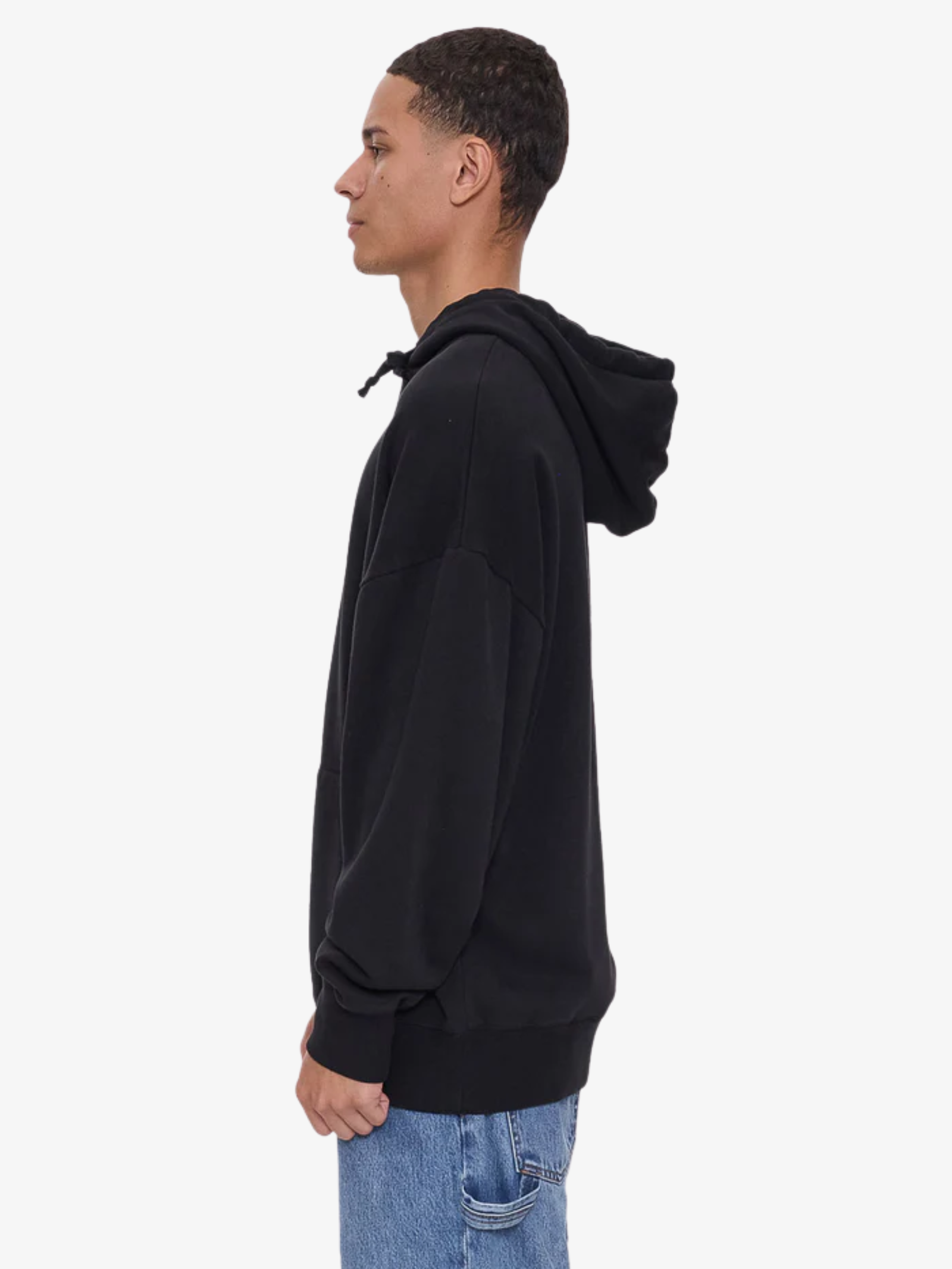 The Super Blast Pull On Hood in Black is designed with a slouchy silhouette and relaxed fit. This hoodie features a minimalist finish, and kangaroo pockets.