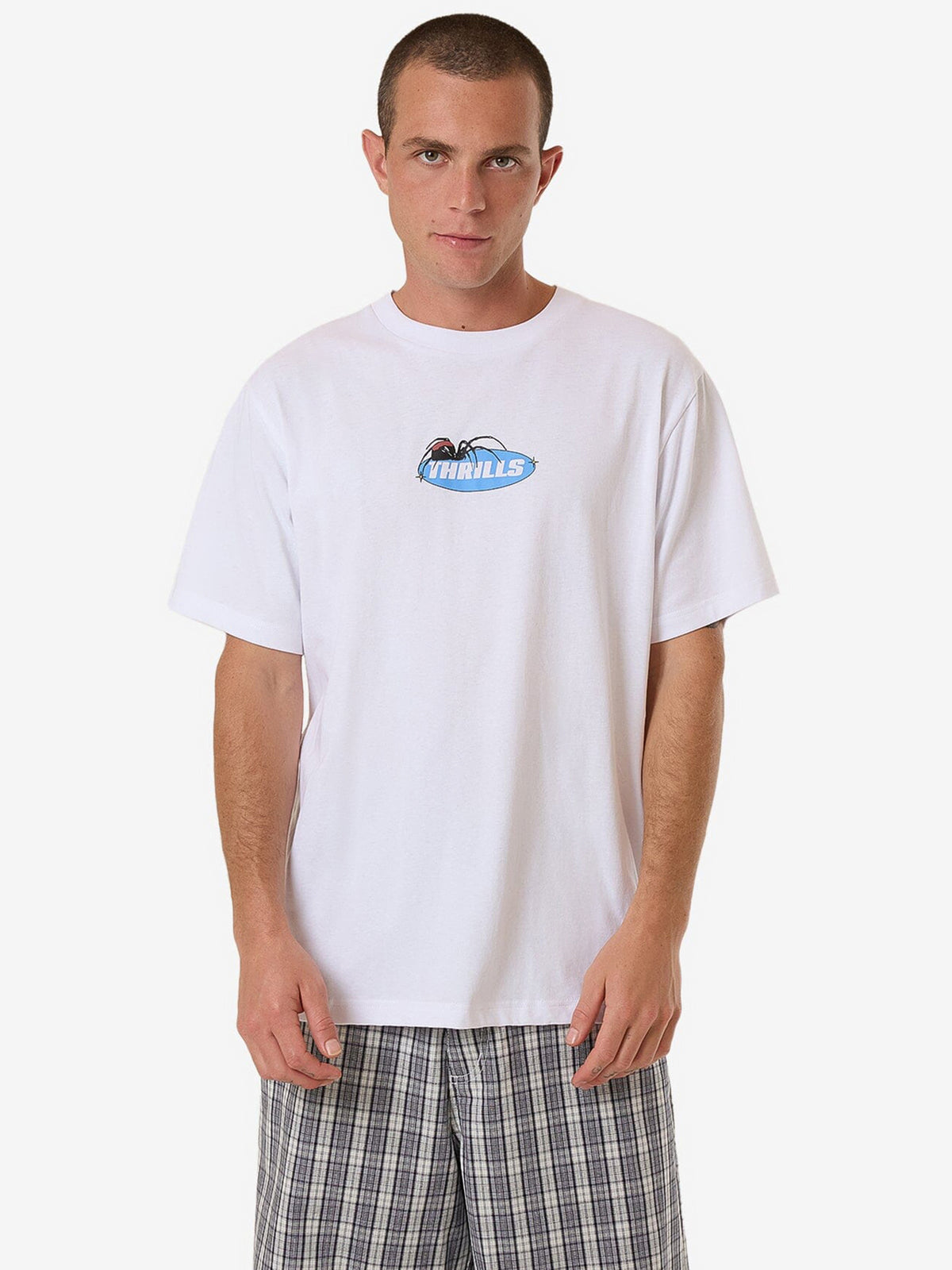 The Trust In Us Merch Fit Tee in White blends Chicano influences with classic streetwear aesthetics. Made from 100% organic cotton 200gsm dry hand jersey, it ensures a soft yet durable feel. Featuring distinctive Thrills prints on both the front and back, this tee draws inspiration from gas station aesthetics and Chicano culture, offering a unique addition to your casual collection.