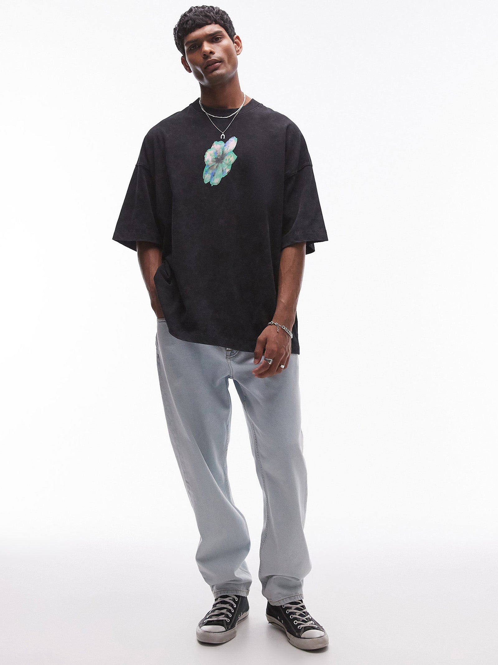 The Extreme Oversized Fit T-Shirt by Topman combines bold proportions with a touch of flair. Designed with a classic crew neck and relaxed drop shoulders, it delivers an effortlessly laid-back silhouette. The standout floral print adds a fresh, contemporary vibe, perfect for elevating casual outfits. Pair it with slim-fit jeans or shorts for a balanced, on-trend look.