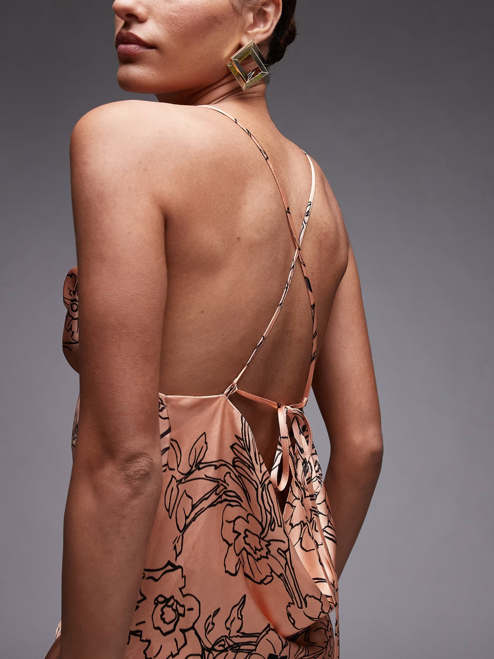 This Cowl Maxi Slip Dress by Topshop pairs a soft floral design with a draped cowl neckline for a touch of elegance. The cross-back straps and tie-back fastening enhance the back detail, while the viscose fabric gives it a lightweight, fluid drape.