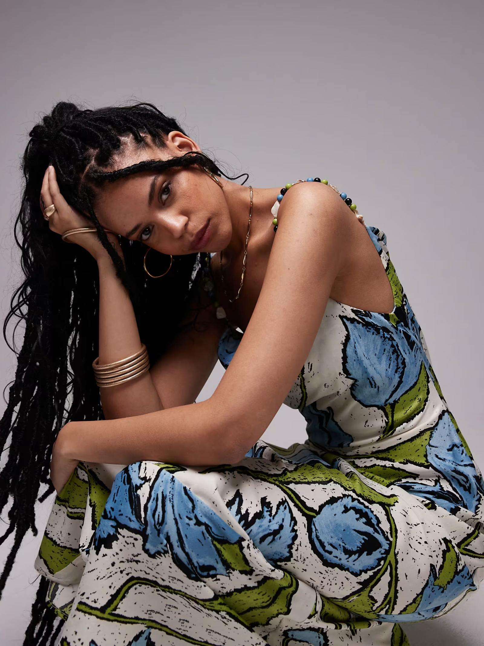 This Cowl Neck Midi Slip Dress by Topshop features a romantic floral print with a draped cowl neckline and shimmering beaded straps. The zip-back fastening provides a smooth finish, while the regular fit skims the body for an elegant silhouette.