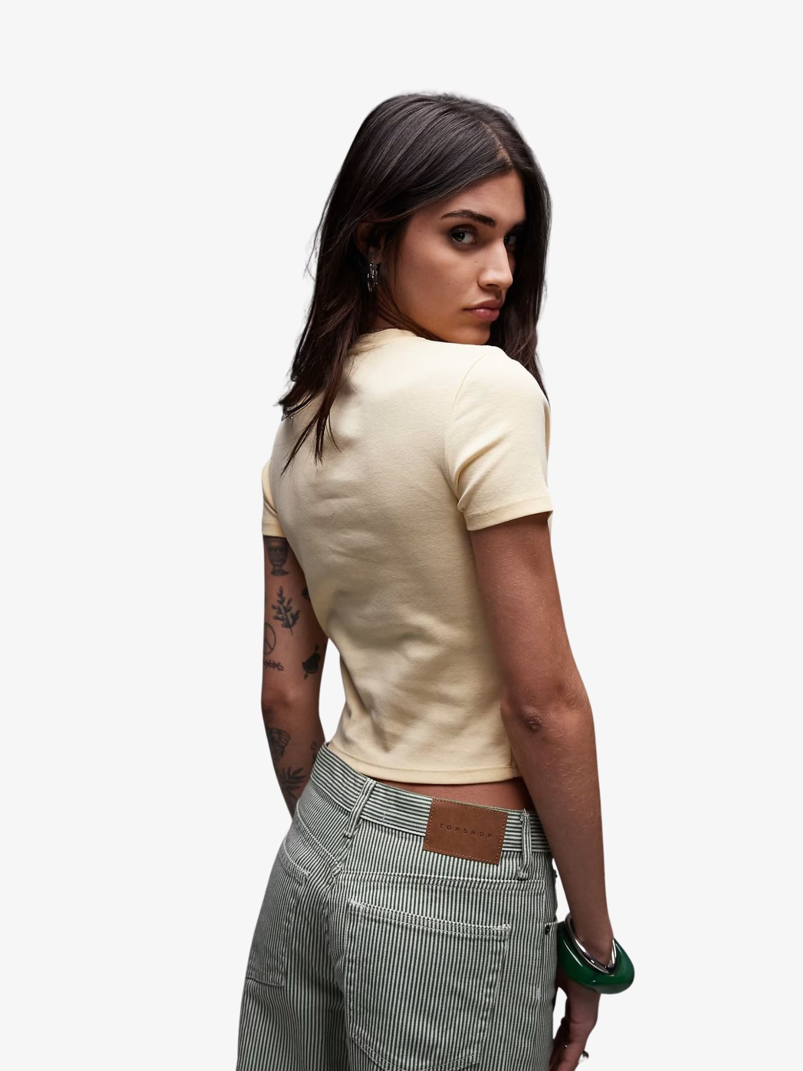 The Graphic Linguine Baby Tee from Topshop is cut to a regular fit with short sleeves and a crew neck. Built in cotton jersey with a printed chest detail.