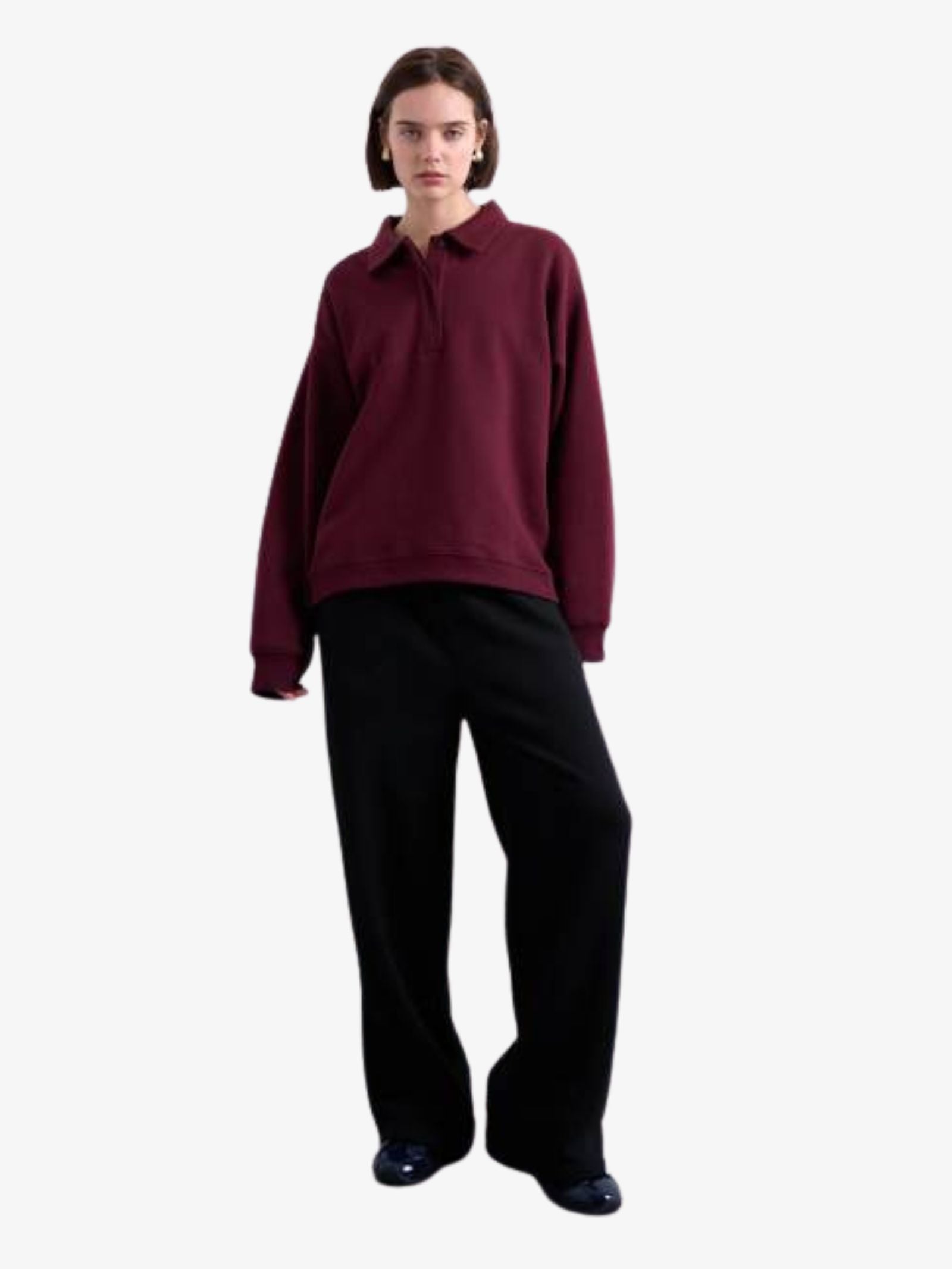 The Polo Sweatshirt by Topshop is crafted from a soft, warm fabric, offering both comfort and style. With a versatile plain design, it features a polo collar, concealed button placket, and drop shoulders. Ribbed trims and a relaxed fit complete the look, making it a perfect addition to your casual wardrobe.