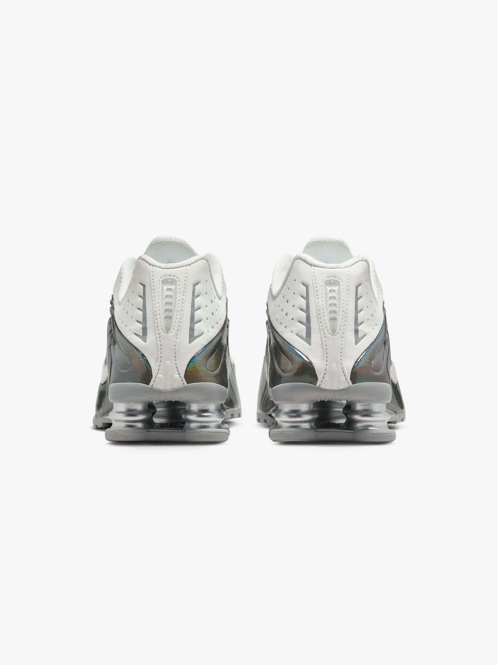 The Nike Shox R4 Women’s Shoes revitalize the iconic 2000 design with Shox cushioning for responsive support. The synthetic and textile upper replicates the original design, while laser perforations add a fresh, breathable finish.