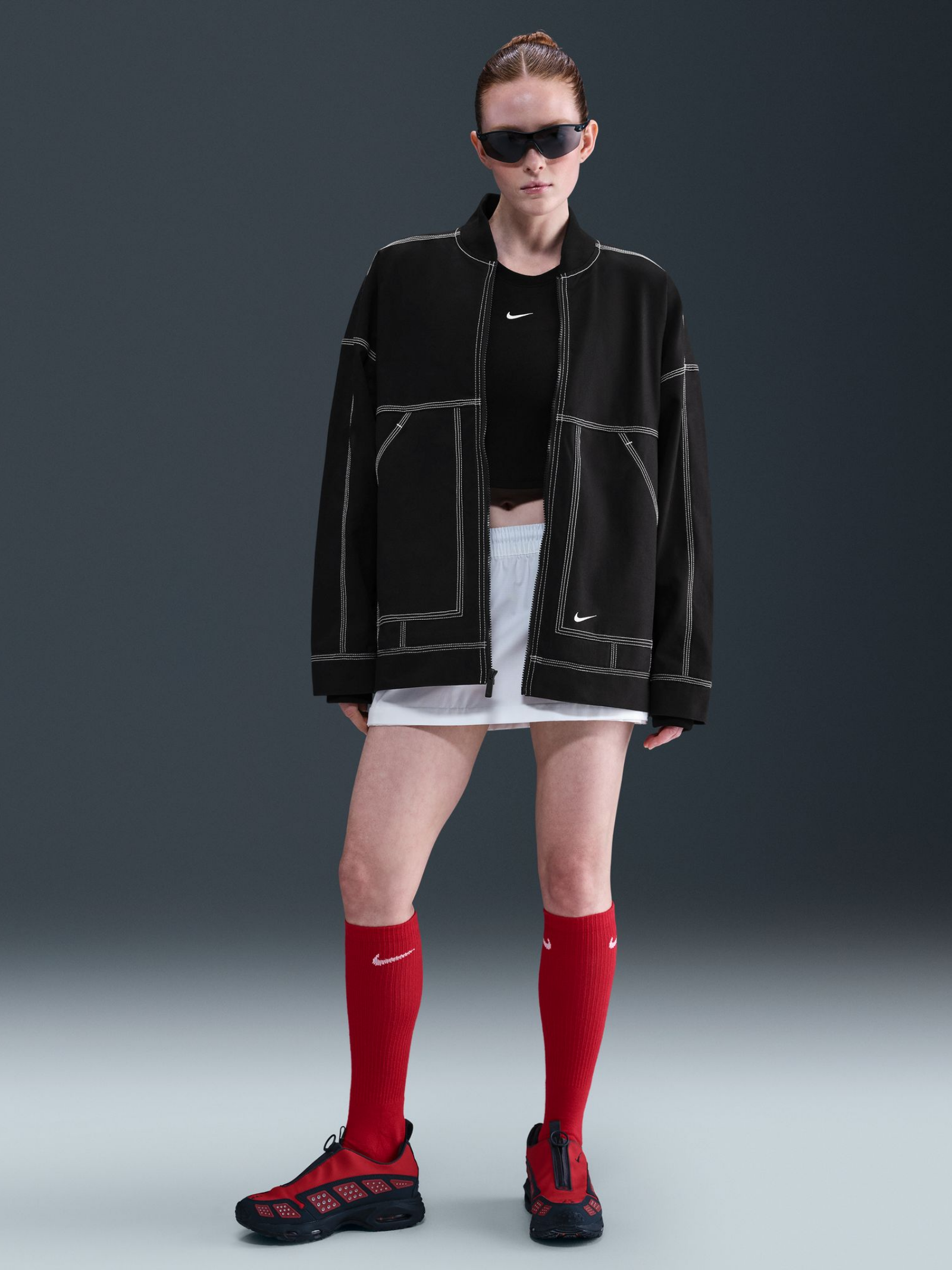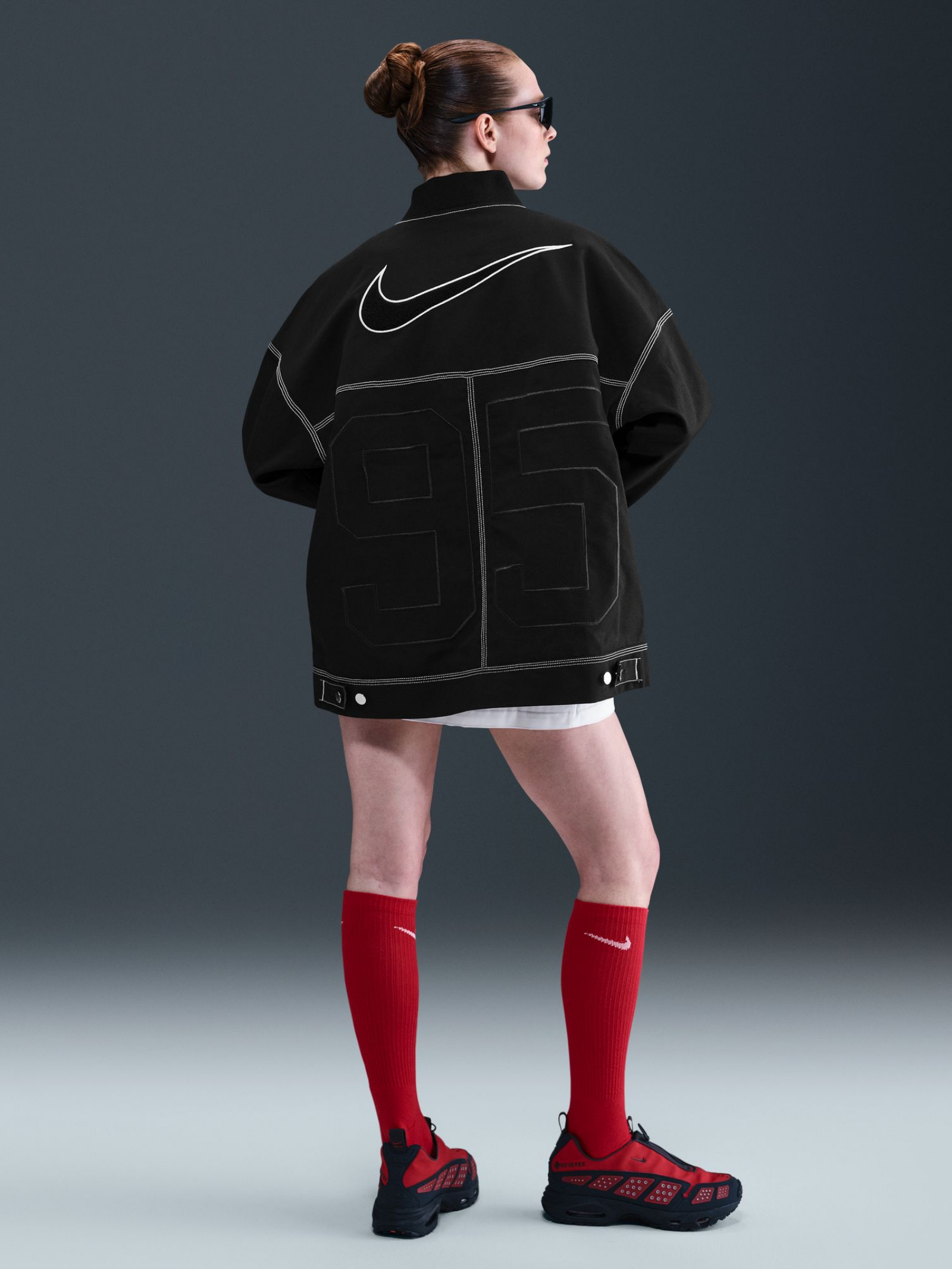 Combining function and flair, the Nike Women's Oversized Graphic Cargo Jacket features a sturdy cotton canvas outer, embroidered branding, and utility-inspired details. Textured accents and rib cuffs round out this elevated outer layer.